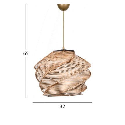 Μοντέρνο κρεμαστό φωτιστικό οροφής,από bamboo υλικό σε φυσική απόχρωση.