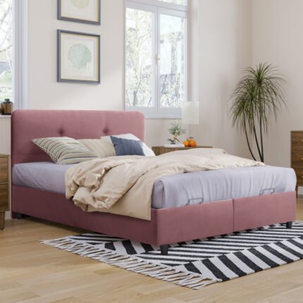 Το κρεβάτι MARTINA με 3-ΕΤΗ ΕΓΓΥΗΣΗ ΣΚΕΛΕΤΟΥ είναι μια ξεχωριστή πρόταση που θα ενθουσιάσει τους χρήστες του, χάρη στην αισθητική υπεροχή του βελούδου και φυσικά την μοντέρνα σχεδιαστική προσέγγιση στο κεφαλάρι. Η έλλειψη του κλασικού σομιέ και η κατασκευή με μοριοσανίδες στήριξης του στρώματος είναι το μεγάλο πλεονέκτημα αυτού του κρεβατιού. Άλλωστε, ο καλύτερος τρόπος στήριξης ενός στρώματος είναι αυτός ακριβώς. Και σαν να μην έφτανε αυτό, ο έξυπνος αποθηκευτικός χώρος κάτω από τις βάσεις του στρώματος ολοκληρώνει την χρηστικότητα αυτού του κρεβατιού. Πρόκειται για ιδανικό κρεβάτι τόσο για το σπίτι, όσο και για επαγγελματικούς χώρους, όπως ξενοδοχεία και Airbnb. Άλλωστε, ακόμα κι η συναρμολόγησή του είναι πανεύκολη, αφού βιδώνετε τα πόδια στα υποστρώματα και στην συνέχεια προσαρμόζετε το κεφαλάρι. Απλά και όμορφα φτιάχνετε το υπνοδωμάτιο των ονείρων σας!