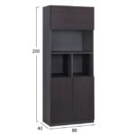 Διαθέτει τρία ντουλάπια με εσωτερικό ράφι, ένα στο επάνω μέρος και δύο στο κάτω και τρεις ανοιχτούς αποθηκευτικούς χώρους.