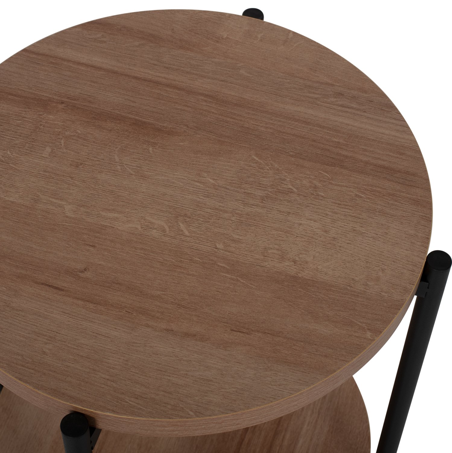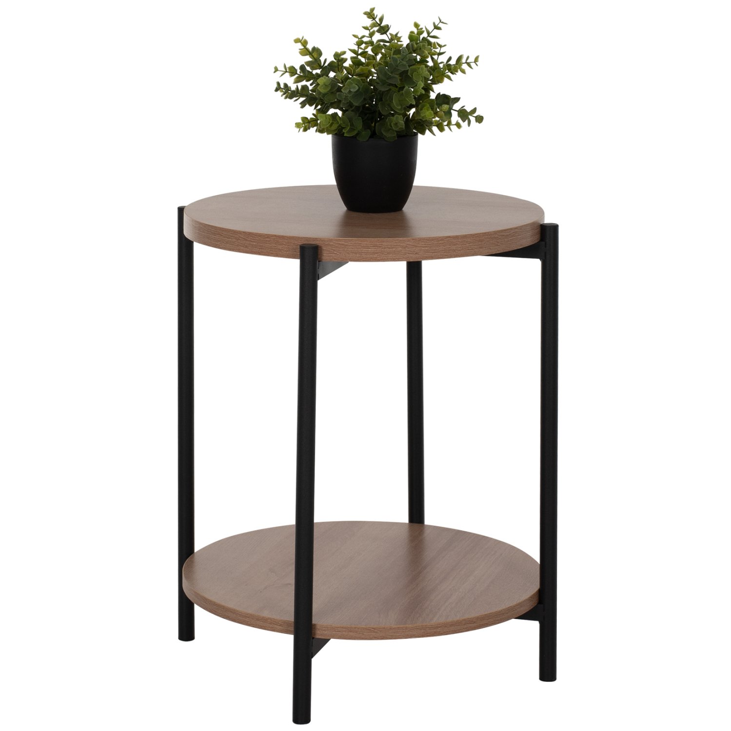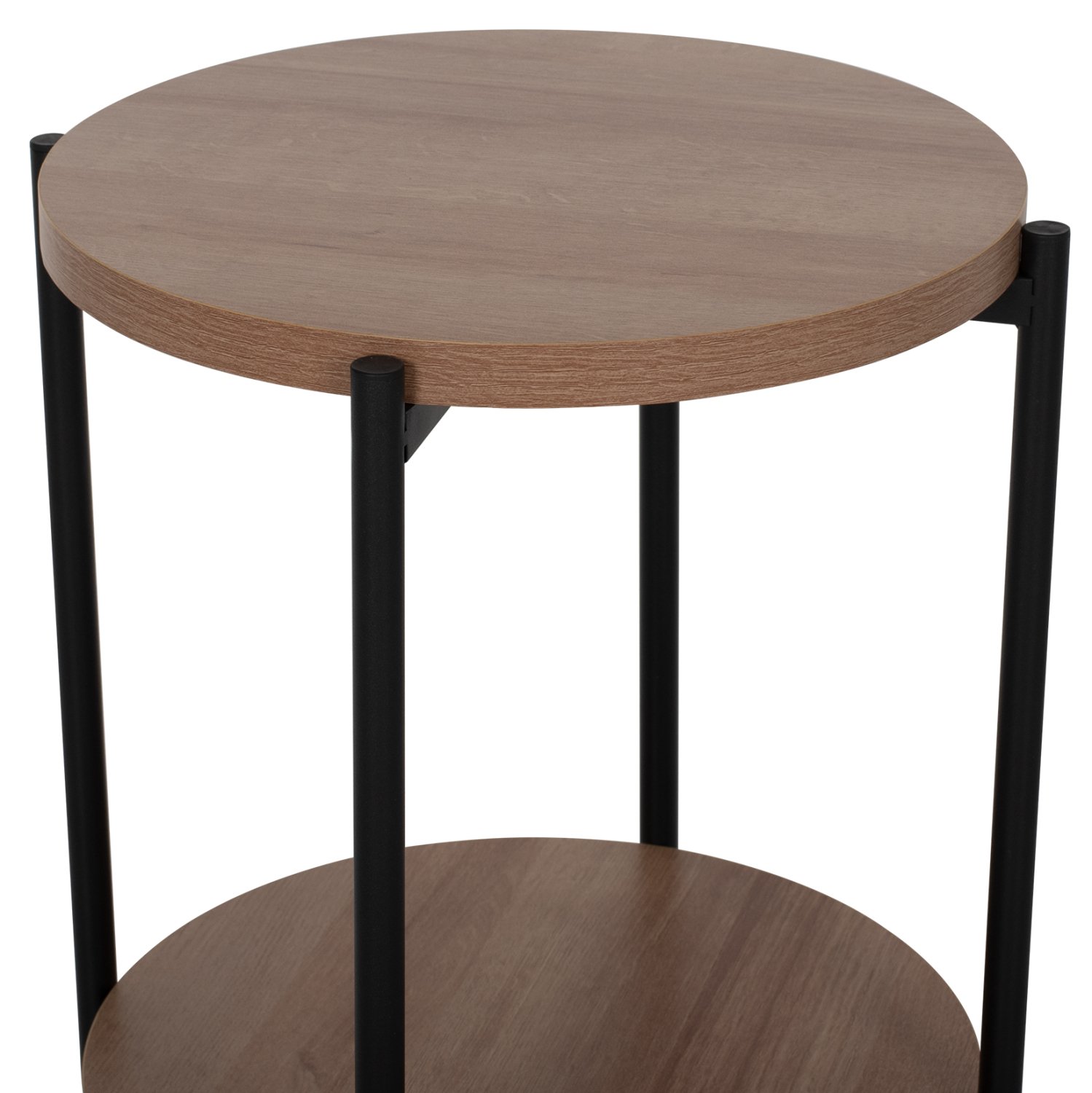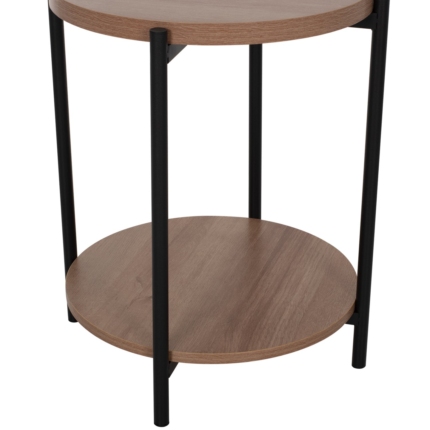 Το NED είναι ένα όμορφο μεσαίου ύψους στρογγυλό βοηθητικό τραπεζάκι μελαμίνης για το σαλόνι, σε ΟΑΚ χρώμα ξύλου. Το χαρακτηριστικό του είναι ότι διαθέτει 2 επιφάνειες οι οποίες στηρίζονται σε ΜΑΥΡΕΣ μεταλλικές χιαστί βάσεις που είναι ενωμένες με τα πόδια. Αυτό το τραπεζάκι θα αναβαθμίσει αισθητικά το σαλόνι σας ενώ μπορεί να ταιριάξει με πολλά διαφορετικά στυλ και χρώματα στον τριγύρω χώρο.