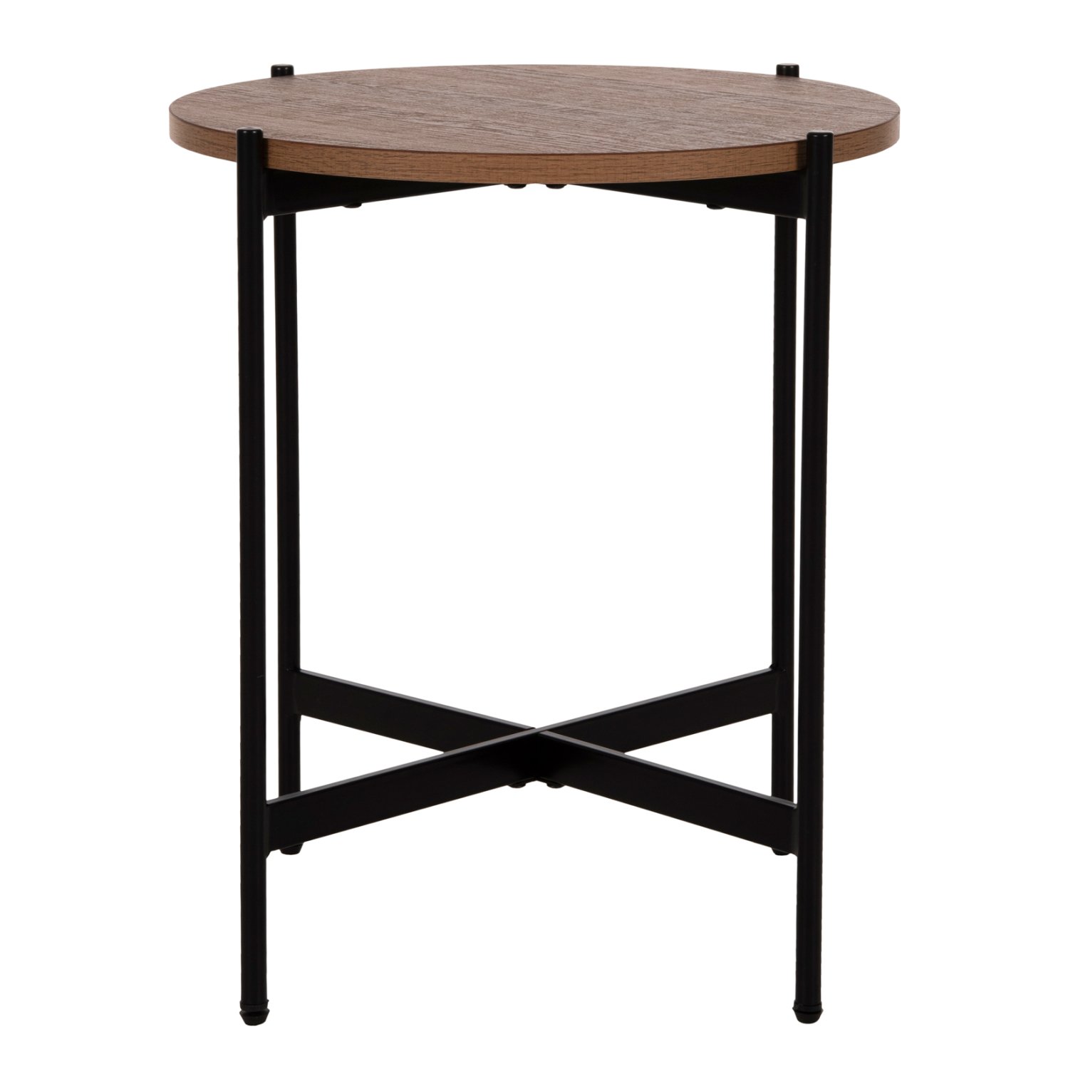 Το βοηθητικό τραπεζάκι ΗΜ9589.04 θα σας ενθουσιάσει με το στυλ και την πρακτικότητά του. Πρόκειται για ένα στρογγυλό ψηλό σχετικά τραπεζάκι με ιδιαίτερο χαρακτηριστικό ότι η επιφάνεια στηρίζεται σε μια βάση με χιαστί διάταξη. Η βάση είναι μεταλλική σε ΜΑΥΡΟ χρώμα, ενώ η επιφάνεια είναι κατασκευασμένη από MDF σε χρώμα ΚΑΡΥΔΙ.