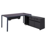 Επαγγελματικό γραφείο με δεξιά γωνία, κατασκευασμένο από μελαμίνη υψηλής ποιότητας, σε γκρι και βέγγε απόχρωση και πόδια αλουμινίου σε σκούρο μπλε χρώμα.
