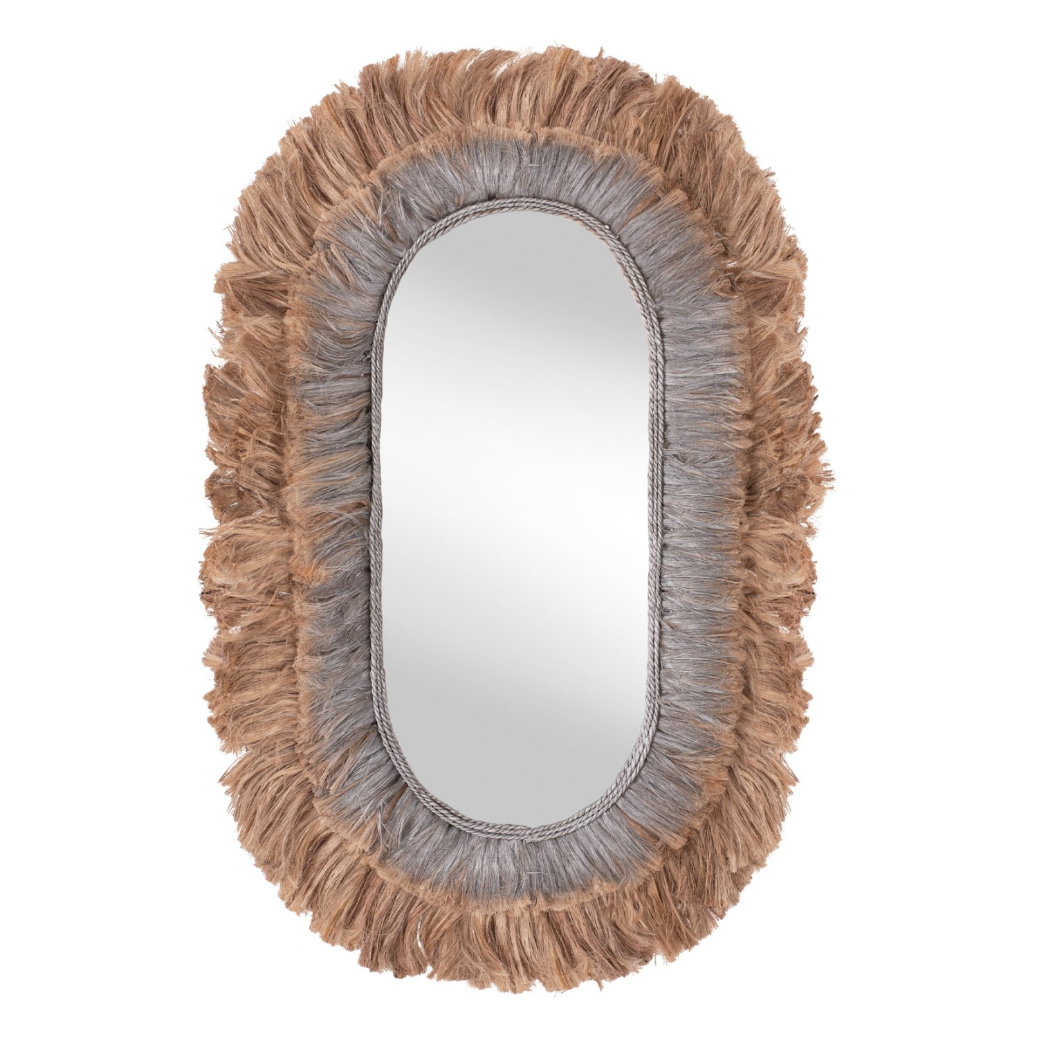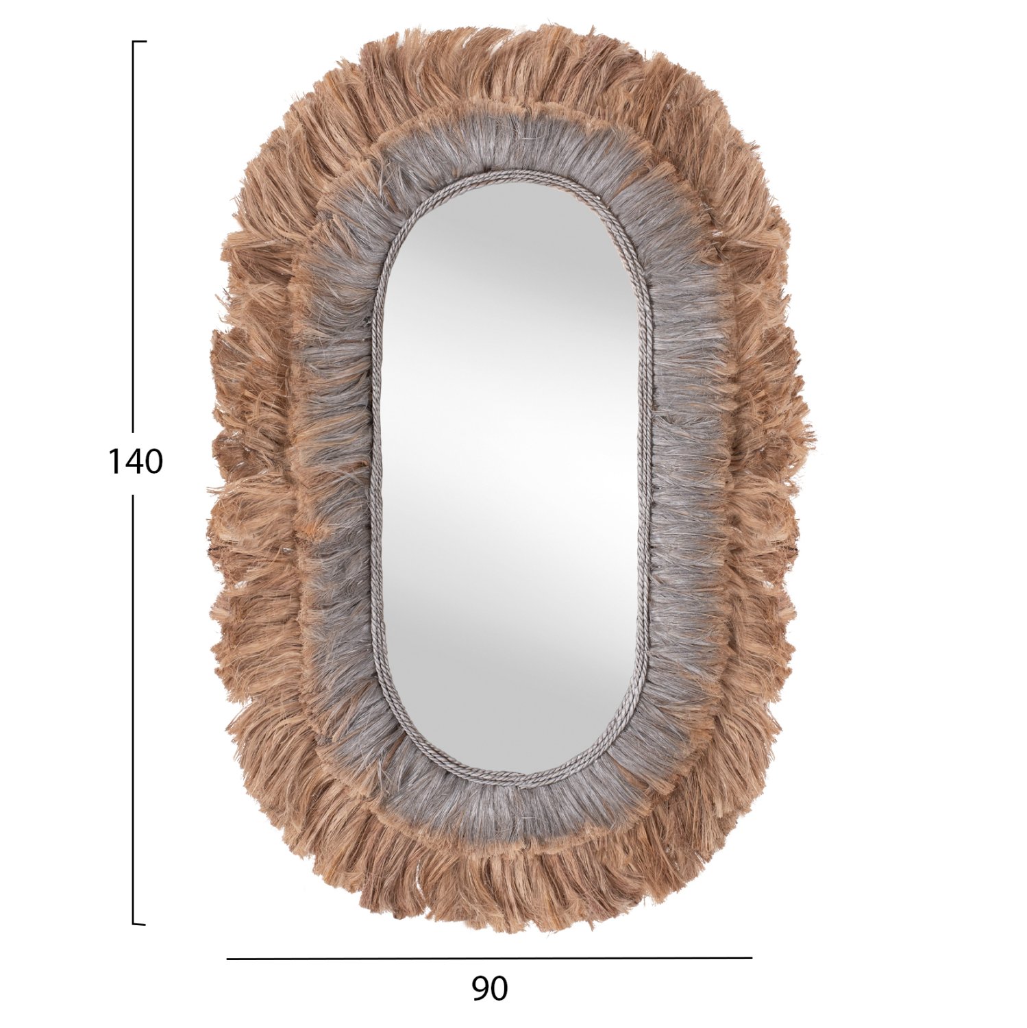 O καθρέπτης ΗΜ7738 σε οβάλ σχήμα είναι πραγματικά ένα εντυπωσιακό κομμάτι στην διακόσμηση του χώρου σας! Το design του είναι όμορφο με πλαίσιο από 2 στρώσεις με ίνες κάνναβης Μανίλας σε φυσικό και ασημί χρώμα, το οποίο στο κέντρο του «φιλοξενεί» τον μεγάλο καθρέπτη. Ένας καθρέπτης τοίχου κυρίως διακοσμητικός που προσφέρει ένα εστιακό σημείο στον χώρο σας σε πολύ ιδιαίτερο στυλ.
