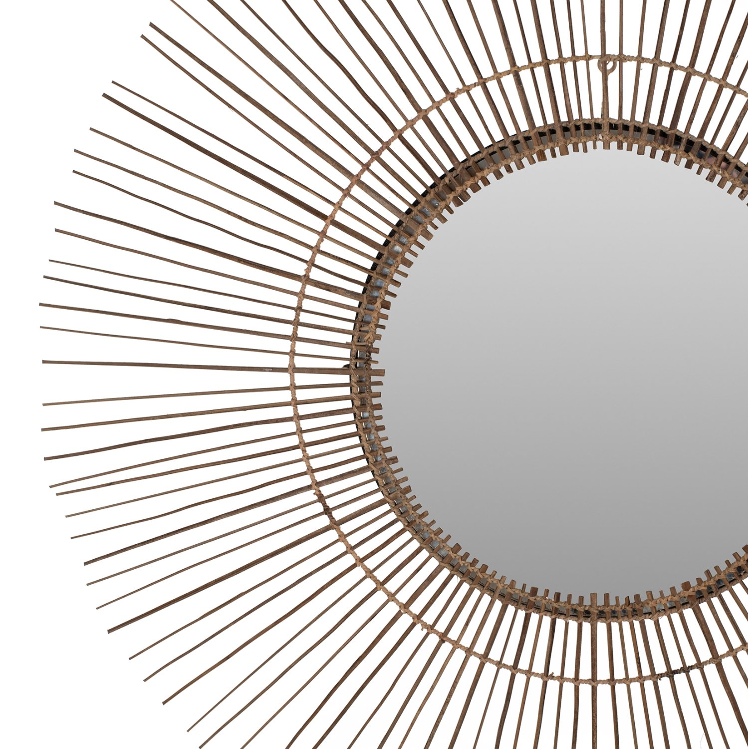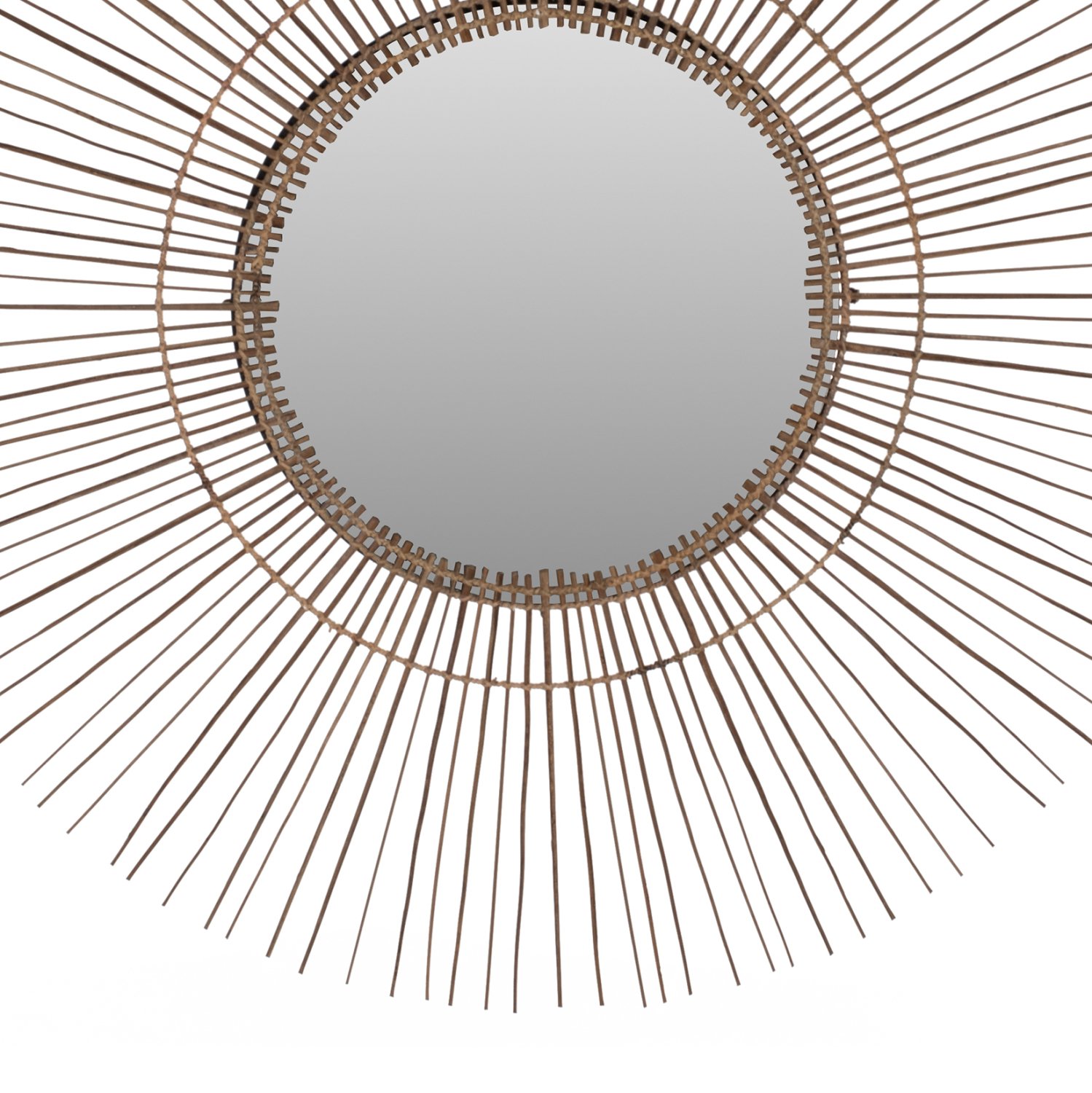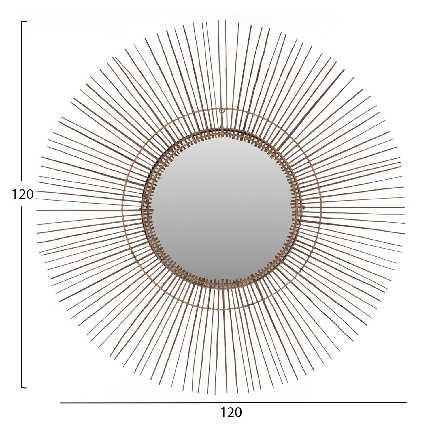O καθρέπτης ΗΜ7732 είναι πραγματικά ένα εντυπωσιακό κομμάτι στην διακόσμηση του χώρου σας! Το design του είναι μοναδικό με την συμμετρική κυκλική διάταξη των sticks από κοκοφοίνικα, τα οποία στο κέντρο τους «φιλοξενούν» τον καθρέπτη. Τα ξύλα είναι στο φυσικό τους χρώμα και οι διαστάσεις όλης της κατασκευής είναι ικανοποιητικές.