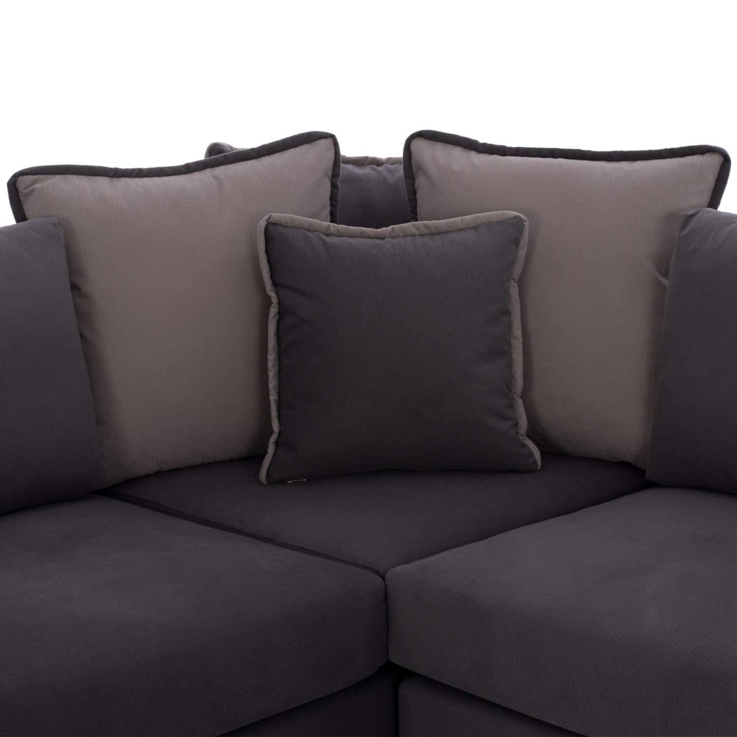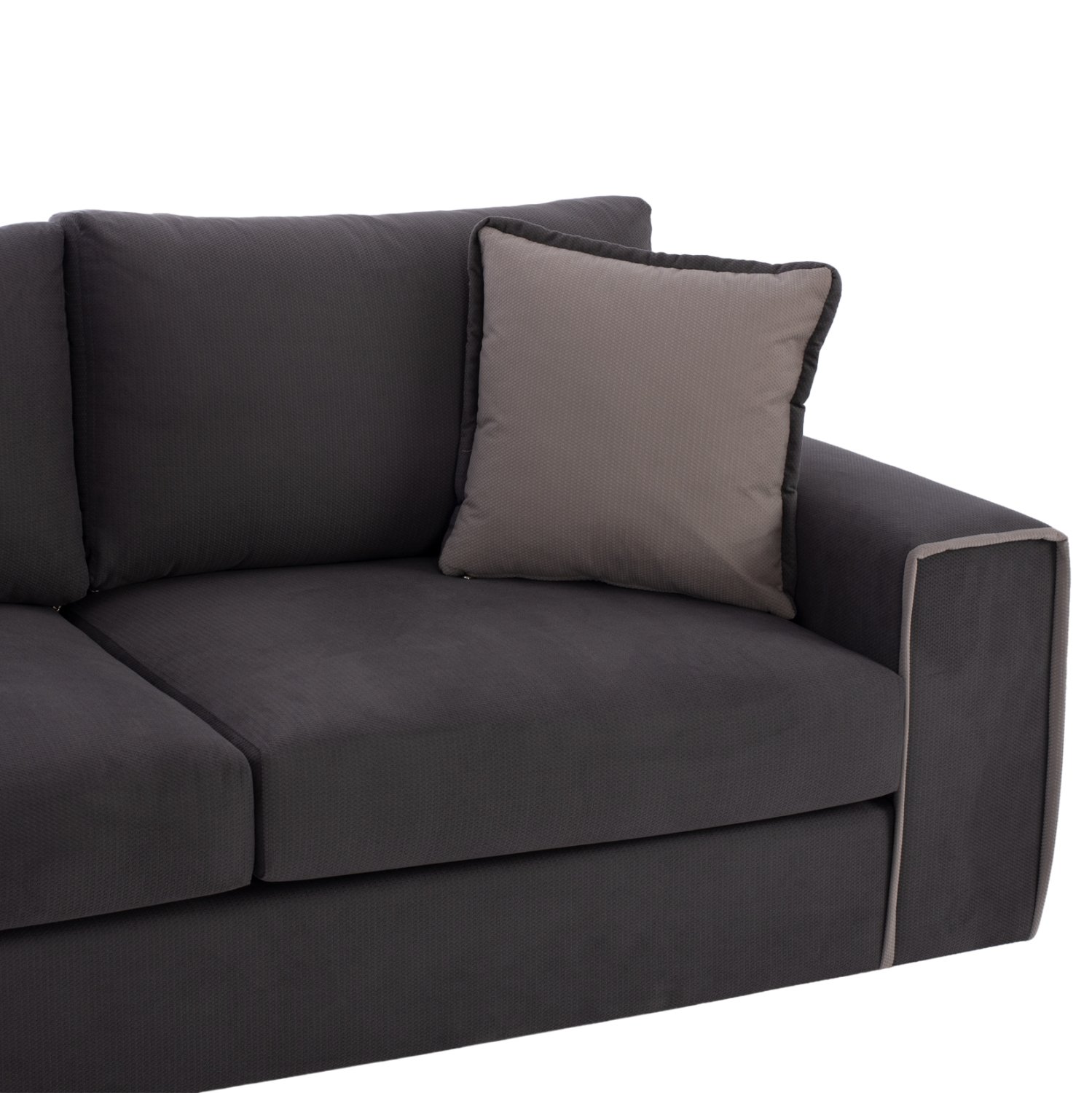 Ξεκινώντας από τα βασικά και τα προφανή, τα χρώματα της επένδυσης με την ανάγλυφη υφή αυτού του καναπέ, είναι γκρι. Διαθέτει 5 μαξιλάρια πλάτης και 4 μαξιλάρια καθίσματος που θα δώσουν την τέλεια αίσθηση άνεσης! Η ευχάριστη αισθητική πινελιά με τα διακοσμητικά μαξιλάρια αλλά και με το ρέλι που διατρέχει τις γωνίες στα μπράτσα αλλά και τα μαξιλάρια πλάτης και τα διακοσμητικά μαξιλάρια ολοκληρώνει την ελκυστική διχρωμία του καναπέ με τον καλύτερο τρόπο.