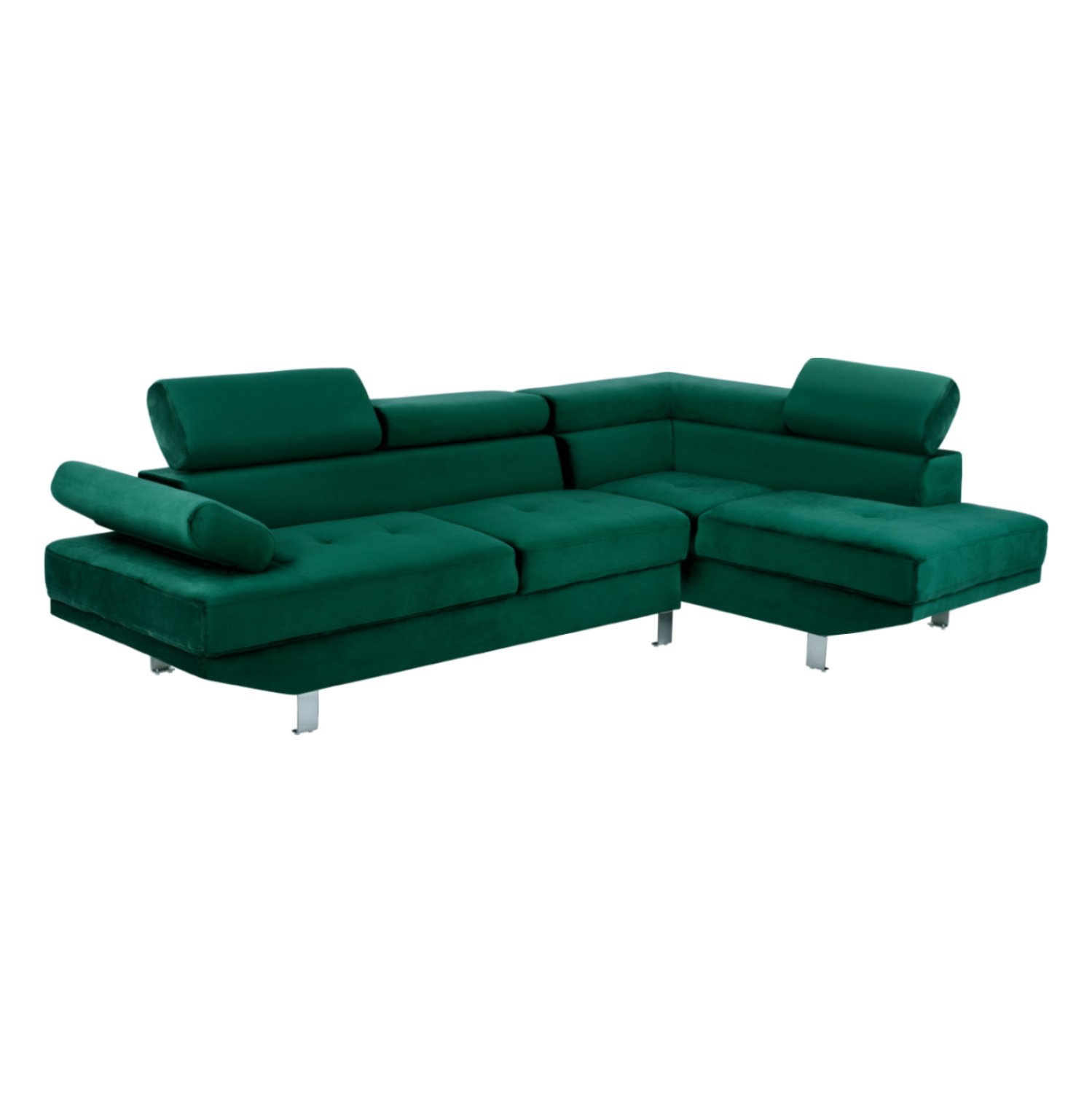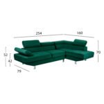 Καναπές-γωνία δεξιά από ύφασμα βελούδο σε κυπαρισσί απόχρωση σε μοντέρνο σχεδιασμό.