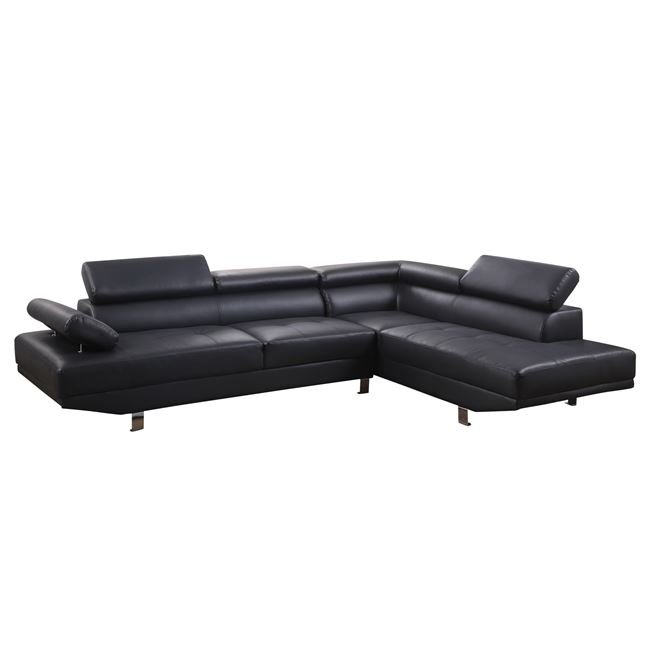 Καναπές δεξιά γωνία, επενδεδυμένος με τεχνόδερμα σε μαύρη απόχρωση 270x200x87Y εκ.