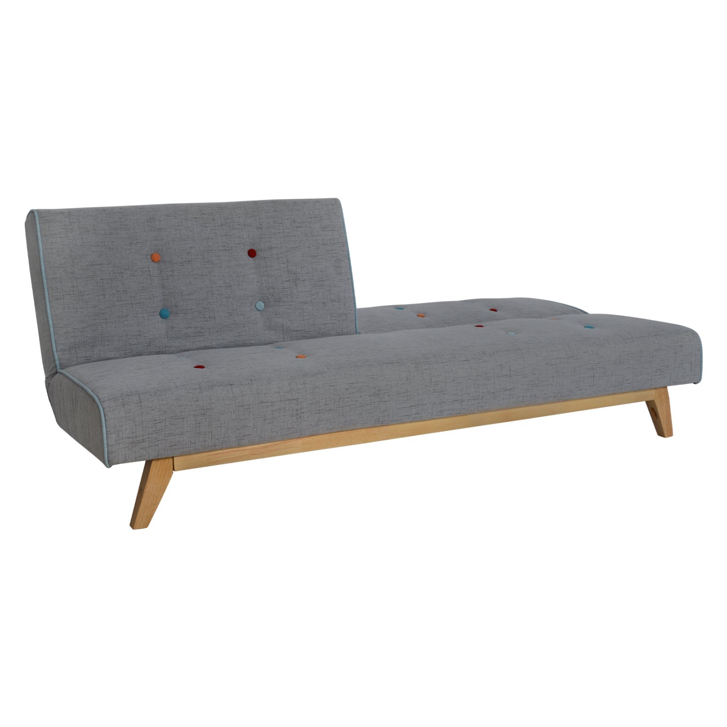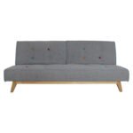 Καναπές κρεβάτι, επενδεδυμένος με ύφασμα σε γκρι απόχρωση και σιελ ρέλι περιμετρικά 184x78x75 cm