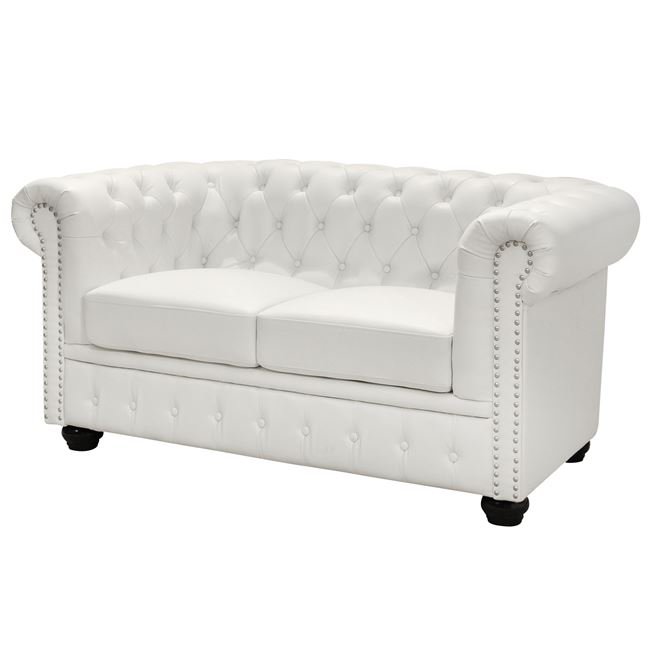 Καναπές διθέσιος τύπου Chesterfield, με τεχνόδερμα σε λευκό ματ 155x90x73 εκ.
