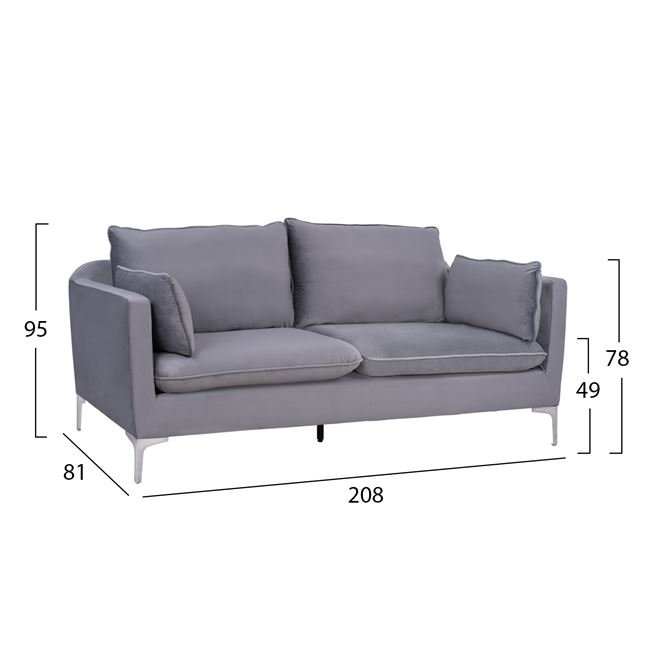 ΚΑΝΑΠΕΣ KAREN 3ΘΕΣΙΟΣ ΓΚΡΙ ΒΕΛΟΥΔΟ & ΜΕΤΑΛΛΙΚΑ ΠΟΔΙΑ ΧΡΩΜΙΟΥ HM3136.31 208x81x95 εκ.