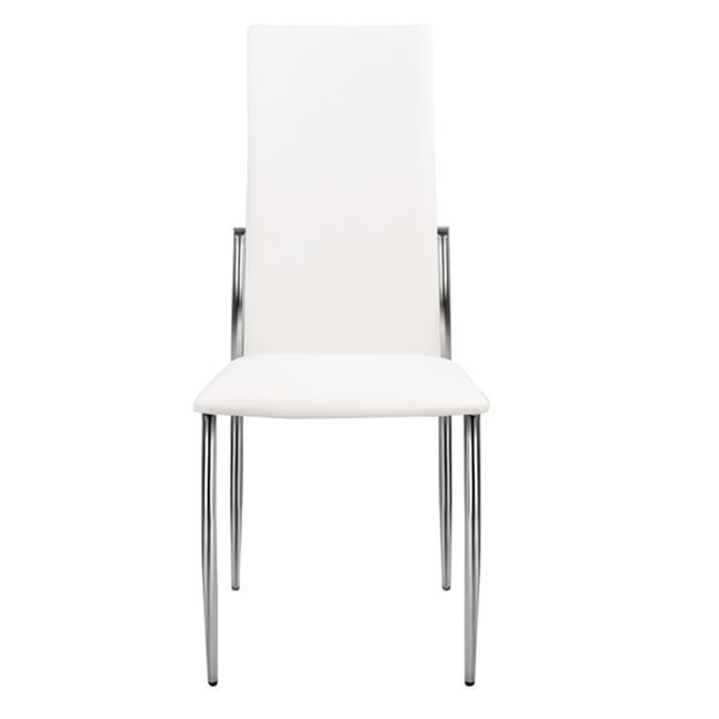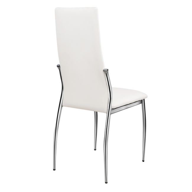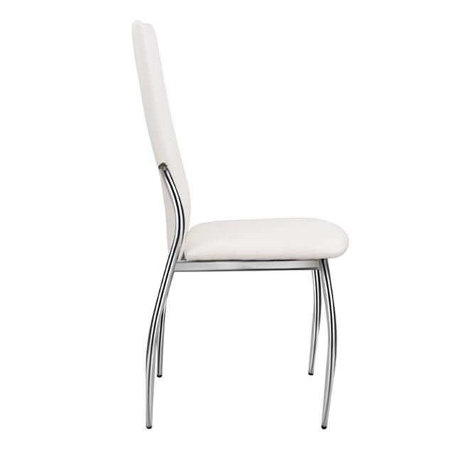 Καρέκλα κουζίνας από μεταλλικό σκελετό χρωμίου και επένδυση από δερματίνη σε λευκό χρώμα.