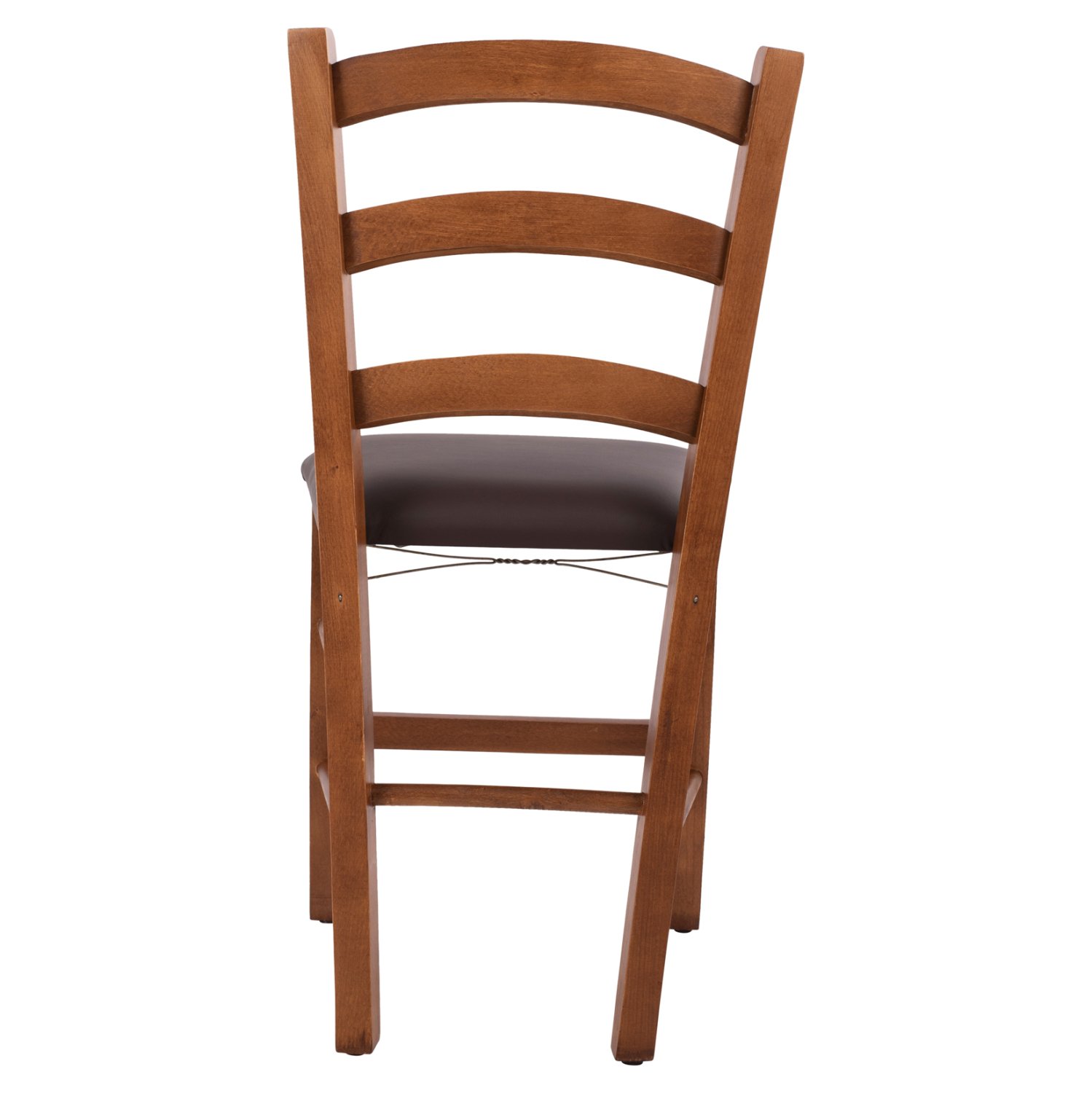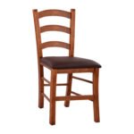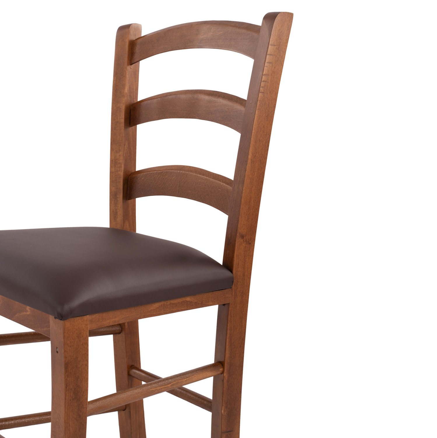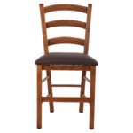 Καρέκλα παραδοσιακή καφενείου από ξύλο φουρνιστής οξιάς, βαμμένη με λούστρο σε καρυδί απόχρωση και κάθισμα από δερματίνη σε καφέ απόχρωση.