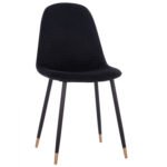 Καρέκλα από βελούδινο ύφασμα σε μαύρη απόχρωση, με μεταλλικό σκελετό σε μαύρη απόχρωση με χρυσές λεπτομέρειες στο τελείωμα των ποδιών 45X56X81Υ εκ.