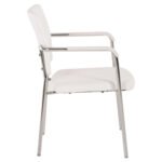 Καρέκλα επισκέπτου με μπράτσα, από λευκό PU και σκελετό από χρωμιωμένο ατσάλι για ύψιστη ασφάλεια, σταθερότητα και αντοχή.