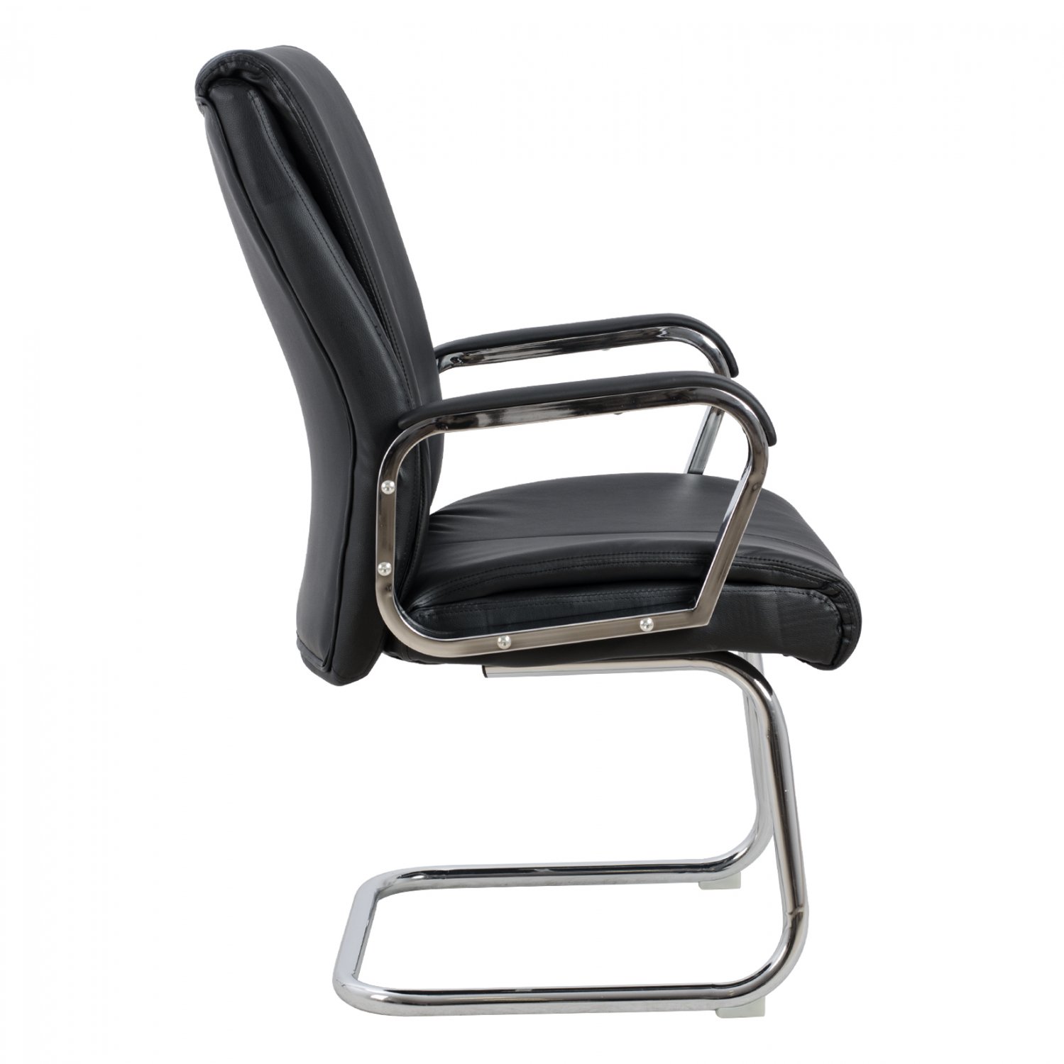 Καρέκλα συνεργασίας με μπράτσα, από υψηλής ποιότητας PU σε μαύρη απόχρωση και σκελετό από χρωμιομένο ατσάλι για ύψιστη ασφάλεια, σταθερότητα και αντοχή.