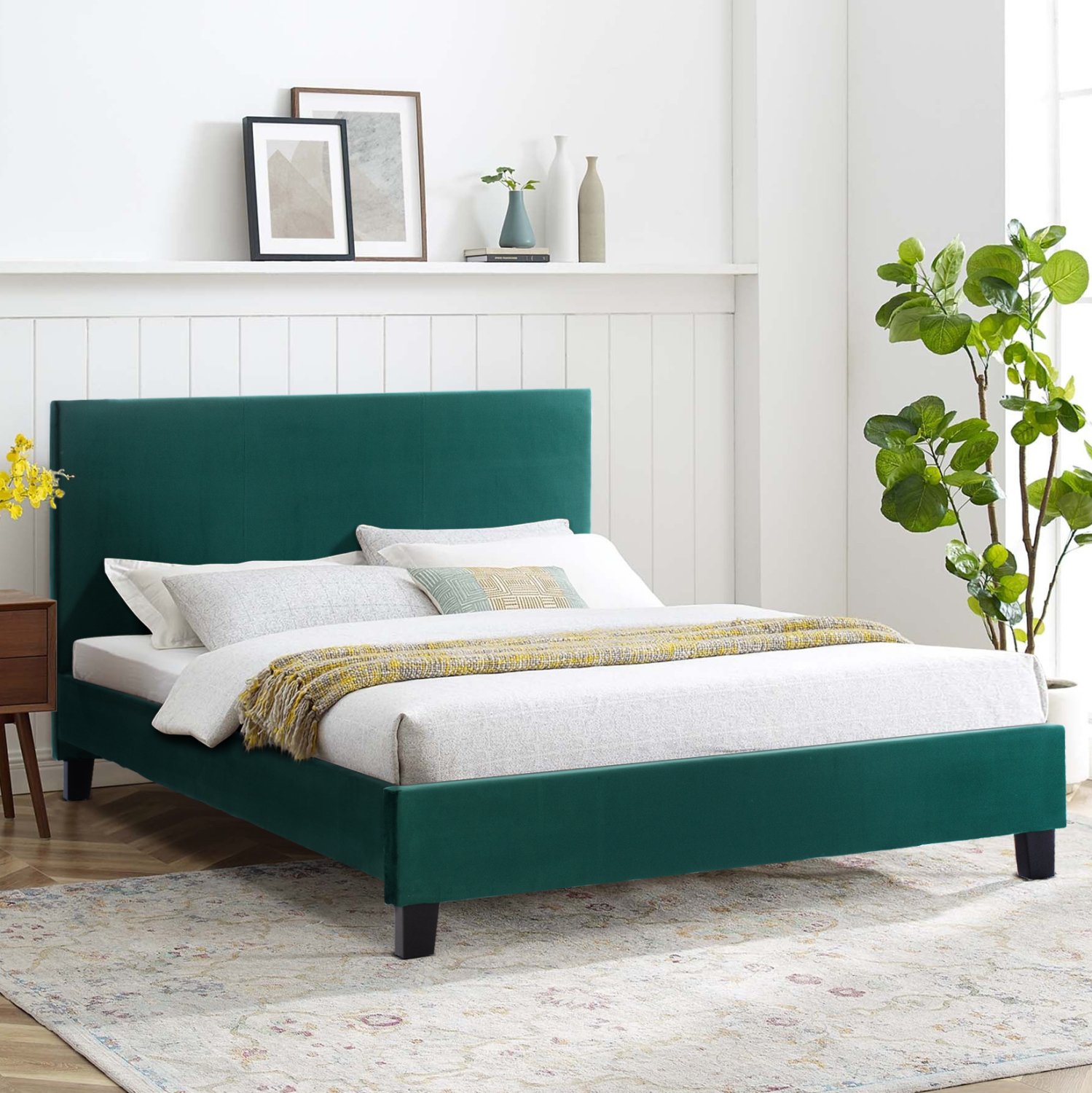 Το κρεβάτι BECCA σε διάσταση διπλού στρώματος, είναι ελκυστικά λιτό, δεν διαθέτει ψηλό ποδαρικό, αλλά διαθέτει σχετικά ψηλά πόδια. Το κύριο χαρακτηριστικό, όμως, είναι η επένδυση όλου του κρεβατιού με ΚΥΠΑΡΙΣΣΙ βελούδινο ύφασμα που δίνει την αίσθηση της πολυτέλειας και της ζεστασιάς. Το στρώμα στηρίζεται σε παραδοσιακές αλλά εργονομικές τάβλες στήριξης, ενώ τα πόδια είναι σε μαύρη απόχρωση δημιουργώντας μια ευχάριστη διχρωμία.