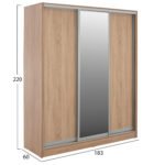 Ντουλάπα τρίφυλλη, σε sonama απόχρωση, 183x60x220 εκ.