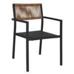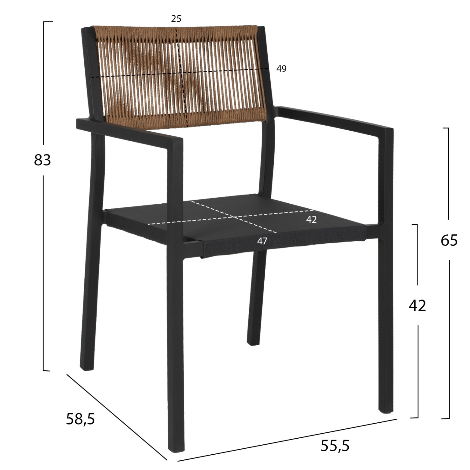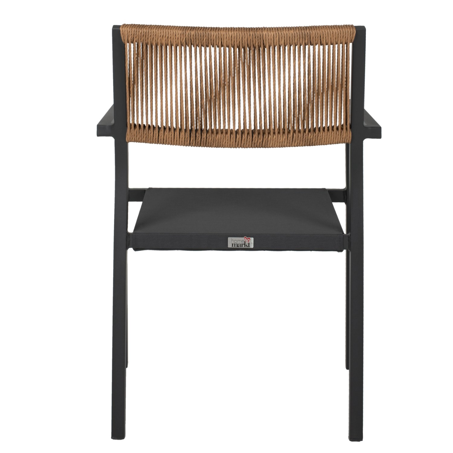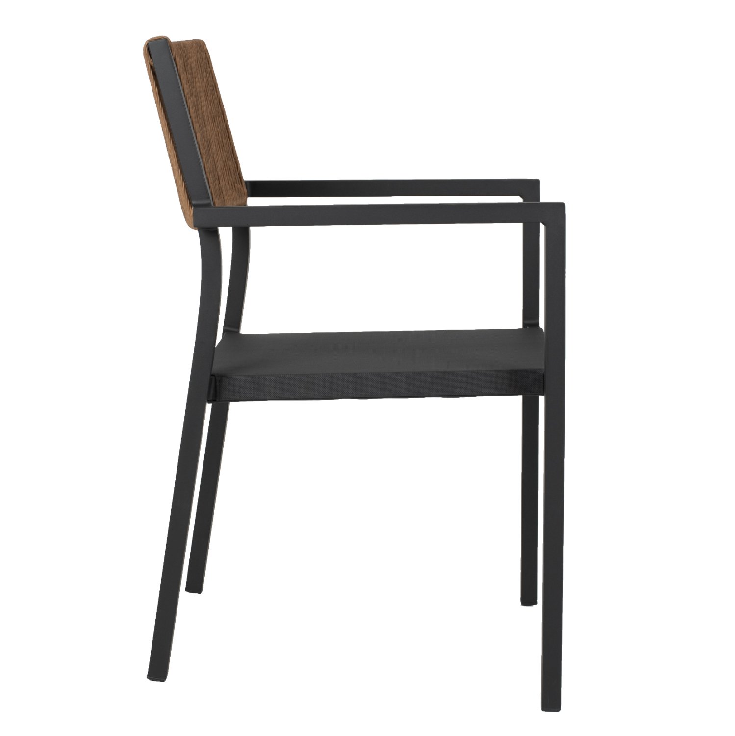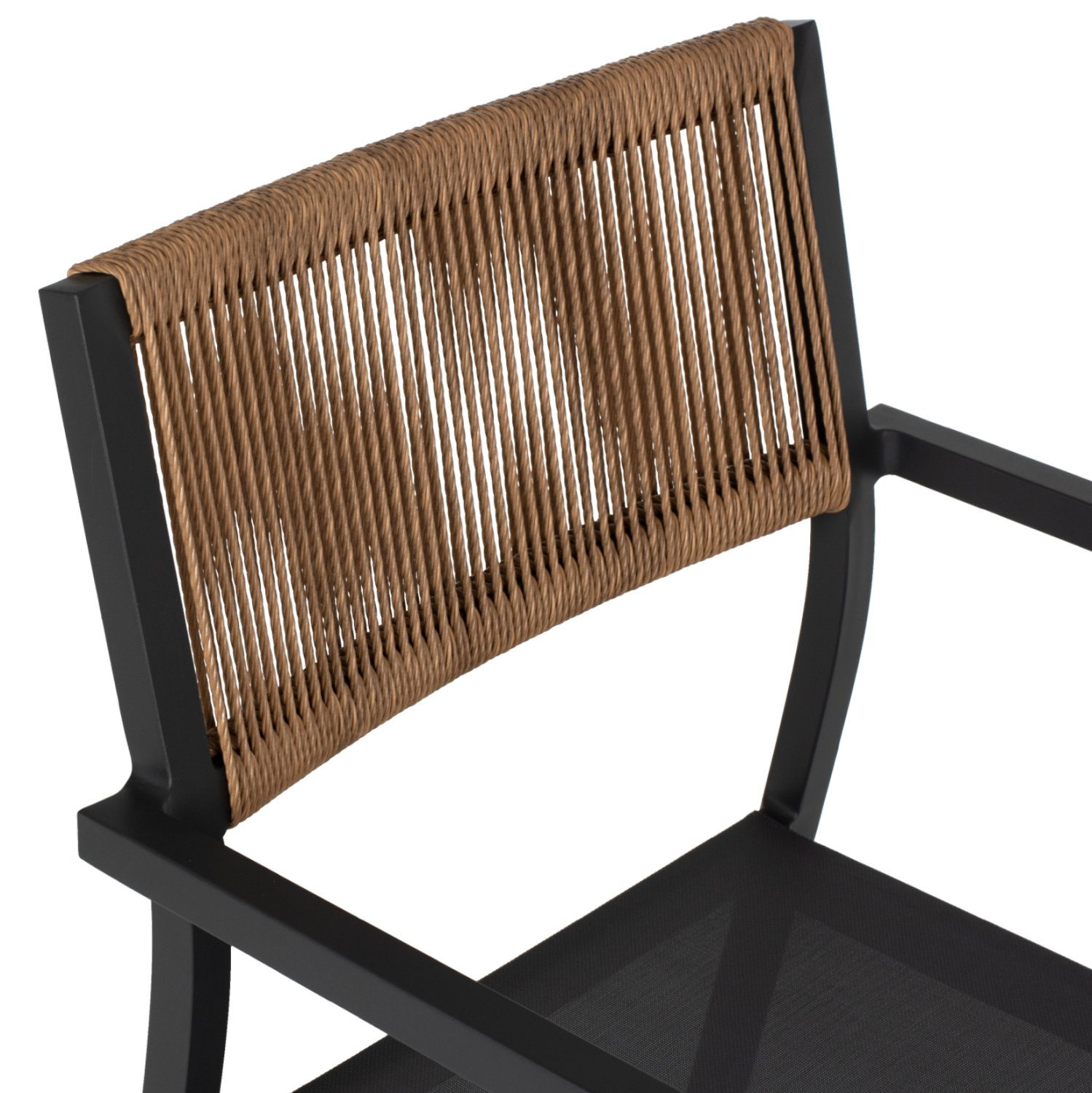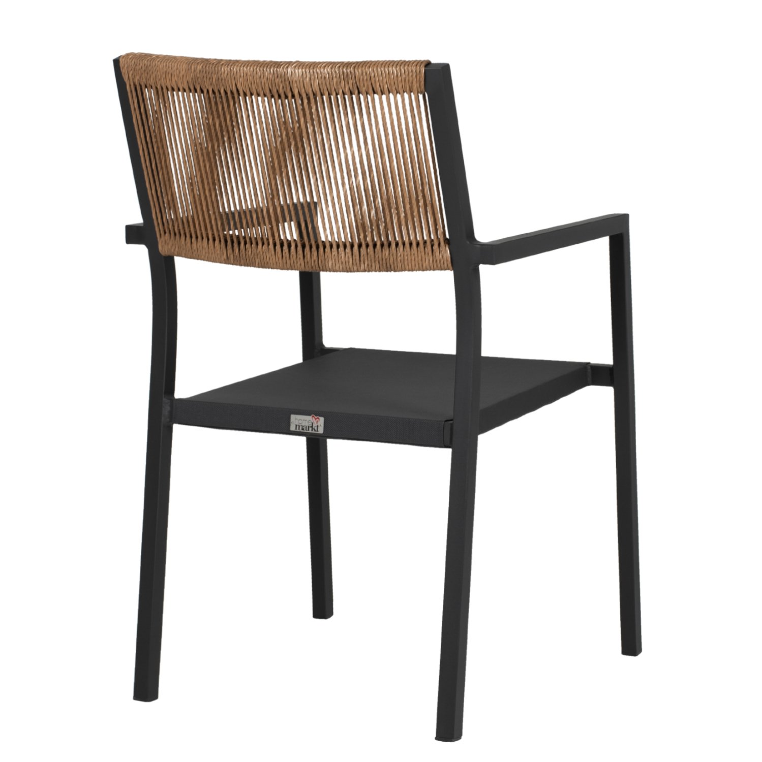Η πλάτη της πολυθρόνας είναι επενδυμένη με πολυεστερικό RATTAN. Στα περισσότερα έπιπλα κήπου και γενικά σε έπιπλα για εξωτερικούς χώρους χρησιμοποιείται συνθετικό υλικό από PVC, δηλαδή τεχνητές ίνες υψηλής ποιότητας. Αυτό δίνει στην κατασκευή εξαιρετική αντοχή και ανθεκτικότητα σε ακραίες συνθήκες ζέστης ή κρύου.