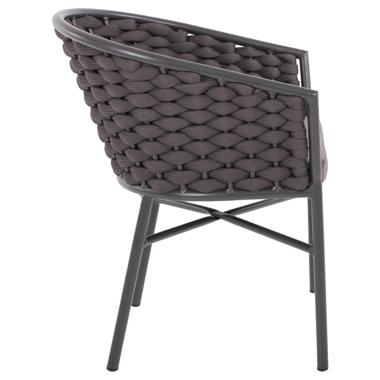 Η πολυθρόνα είναι επενδυμένη με ανθεκτικό συνθετικό σχοινί με αφρώδες γέμισμα.
