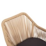 Η πολυθρόνα είναι επενδυμένη με πολυεστερική πλέξη wicker. Το Wicker δεν είναι υλικό, είναι μέθοδος κατασκευής επίπλων κυρίως για εξωτερικούς χώρους. Πρόκειται για μια αρχαία τεχνική, κατά την οποία οι τεχνίτες περνούν το φυσικό ή συνθετικό υλικό από ατμό και στη συνέχεια το λυγίζουν στο σχήμα που θέλουν, ή το πλέκουν. Στην ΗΜ5855.02 η πλέξη wicker έχει γίνει με πολυεστερικές ίνες υψηλής ποιότητας και αντοχής ανθεκτικές σε ακραίες καιρικές συνθήκες ζέστης ή κρύου.