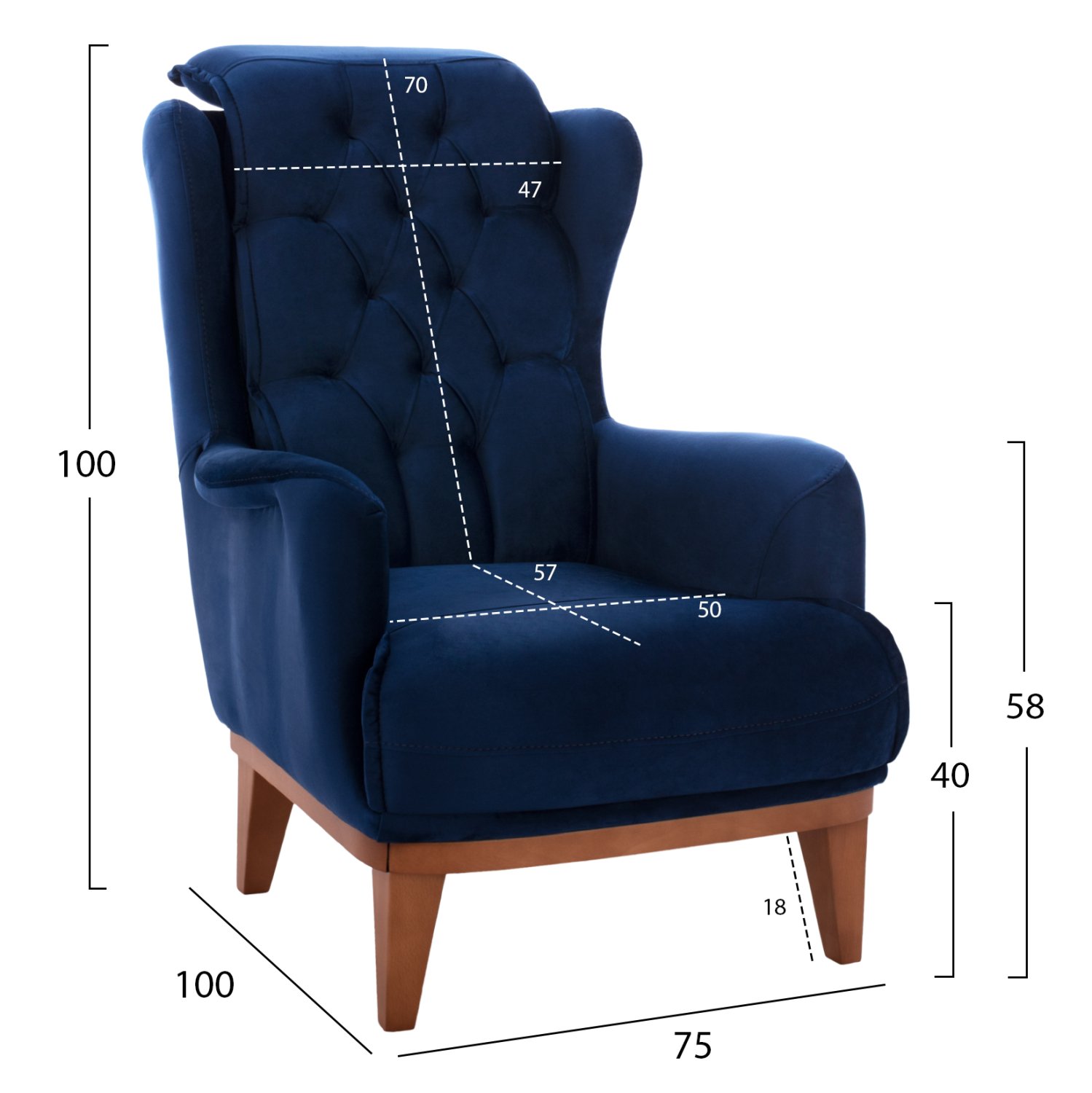 Σας παρουσιάζουμε την μπερζέρα BENNINGTON, σε έντονο ΜΠΛΕ χρώμα με ξύλινα πόδια σε φυσική απόχρωση. Η επένδυση της πλάτης έχει γίνει με τεχνοτροπία καπιτονέ που προσδίδει ιδιαίτερη ομορφιά στην μπερζέρα σε συνδυασμό, φυσικά, με το βελούδο που είναι το ύφασμα της επένδυσης.