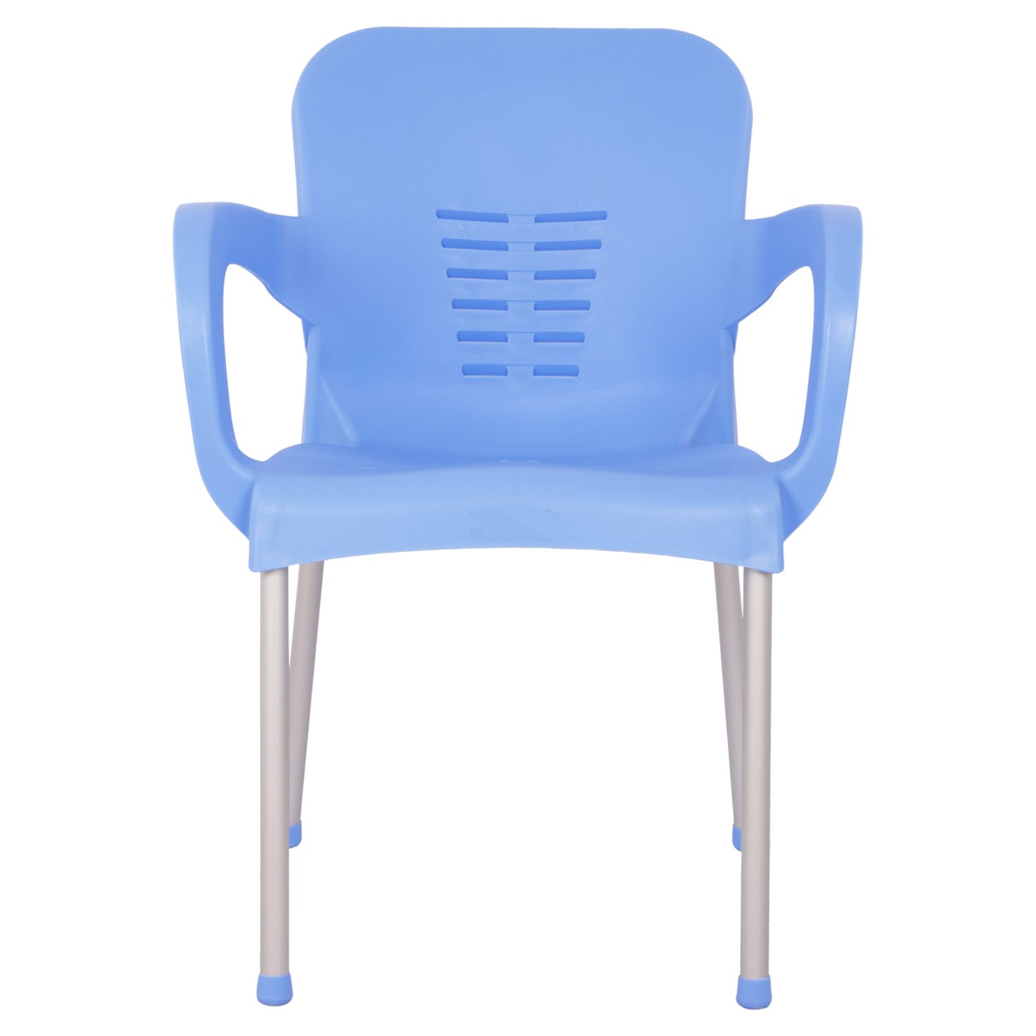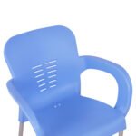 Καρέκλα με μπράτσα από πολυπροπυλένιο με πόδια αλουμινίου σε μοντέρνο σχεδιασμό και μεγάλη αντοχή, σε μπλε απόχρωση.