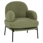 Η πολυθρόνα AGNES είναι μοντέρνα και άνετη. Το κυρίαρχο χρώμα είναι το ΣΑΠΙΟ ΜΗΛΟ, ενώ τα 4 πόδια είναι σε μαύρο χρώμα. Η επένδυση της πολυθρόνας έχει γίνει με ζεστό ΜΠΟΥΚΛΕ ύφασμα που θα δώσει μια διαφορετική όψη στον χώρο σας. Πρόκειται για μια πρόταση όμορφη που θα ταιριάξει σχεδόν παντού!