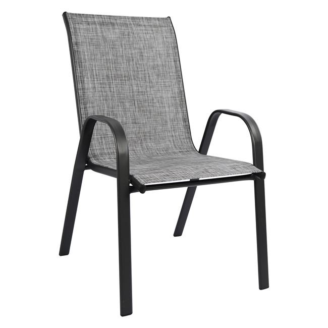 Έξι πολυθρόνες εξωτερικού χώρου από μεταλλικό σκελετό σε γκρι χρώμα με textilene 2×1 μεγάλης αντοχής σε ήλιο και βροχή.