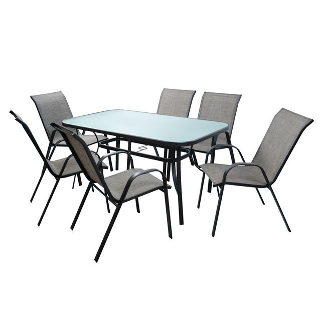 ΣΕΤ ΤΡΑΠΕΖΑΡΙΑ 7ΤΜΧ 1 ΤΡΑΠΕΖΙ 150Χ90+6ΚΑΡΕΚΛΕΣ ΓΚΡΙ HM5119.01