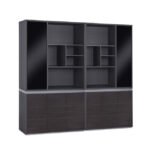 Σετ επαγγελματικής βιβλιοθήκης γραφείου από μελαμίνη σε γκρι και βέγγε απόχρωση.