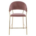 Σκαμπό μεσαίου ύψους Theodore, από βελούδινο ύφασμα σε σάπιο μήλο με επίχρυσο σκελετό 60x55x100 εκ.