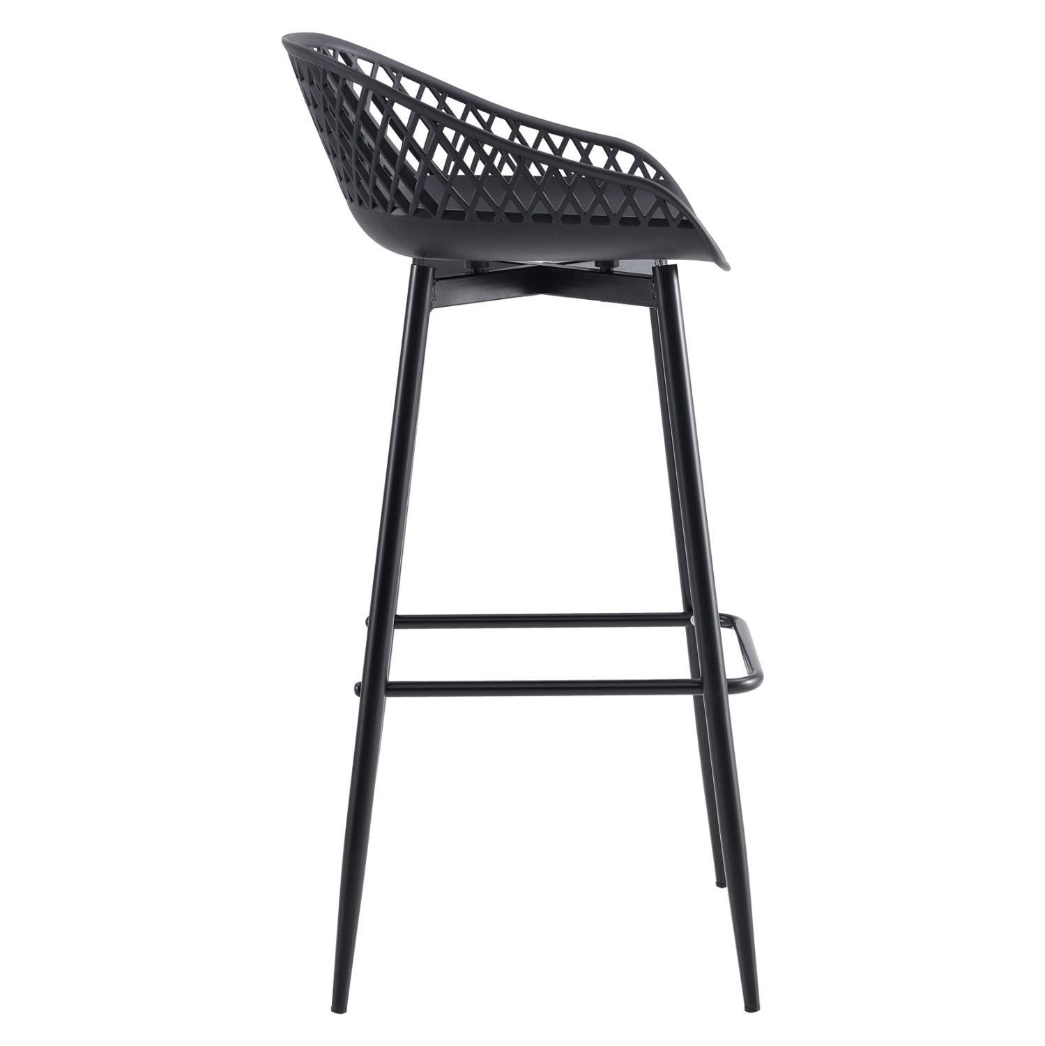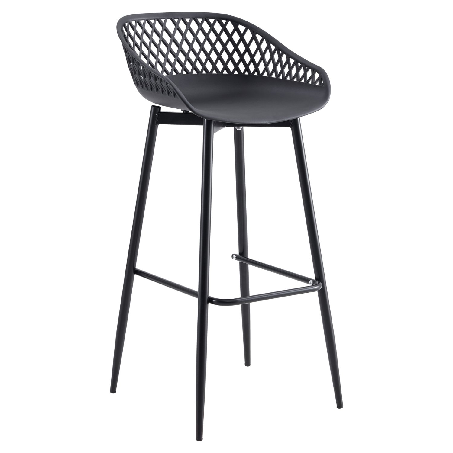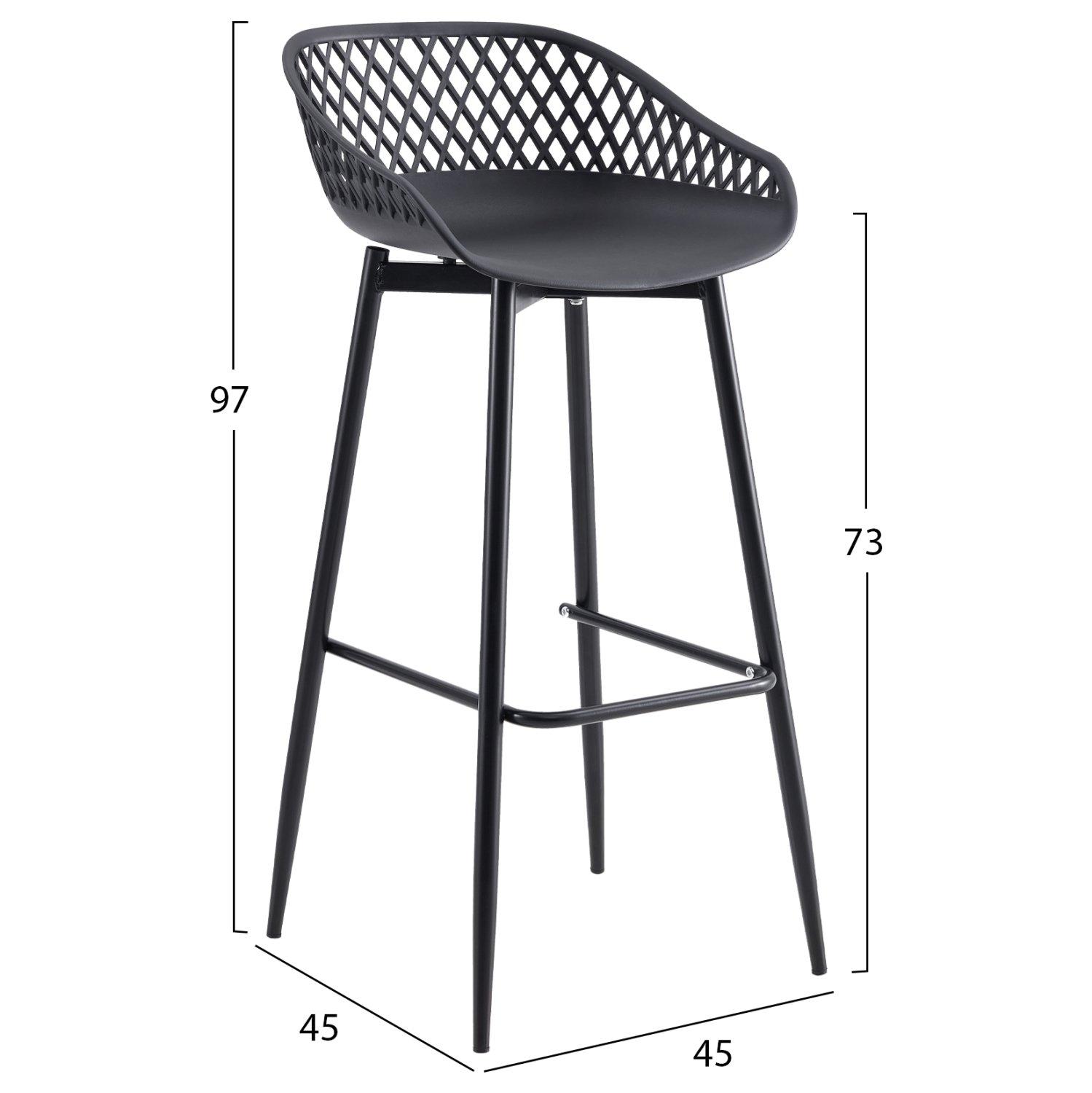 Το σκαμπό μπαρ AVAYA είναι κατασκευασμένο από πολυπροπυλένιο σε ΜΑΥΡΗ απόχρωση, με ΜΑΥΡΑ μεταλλικά πόδια.