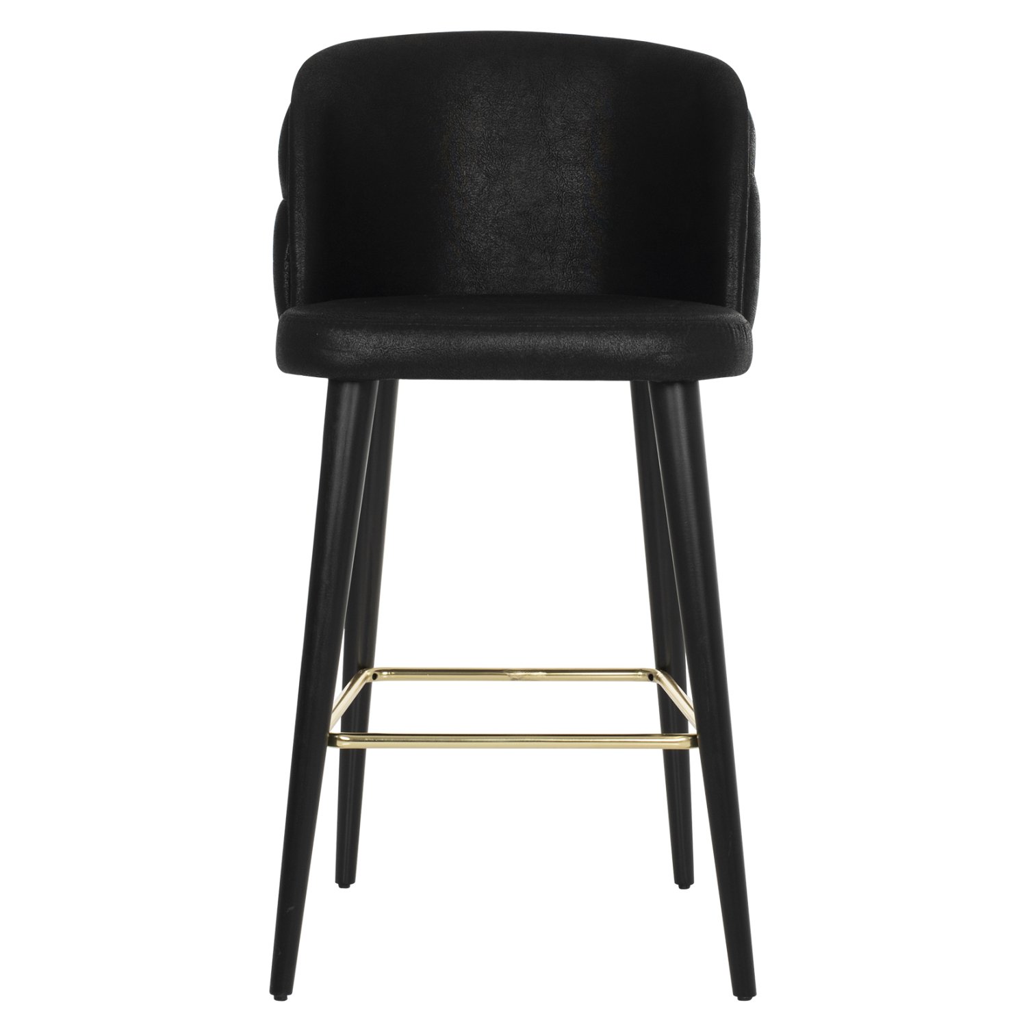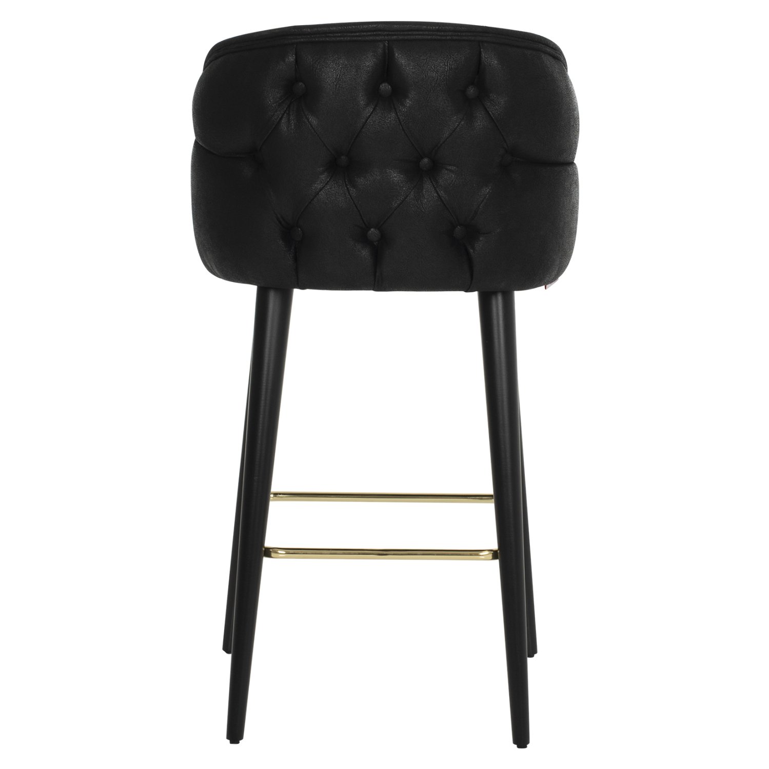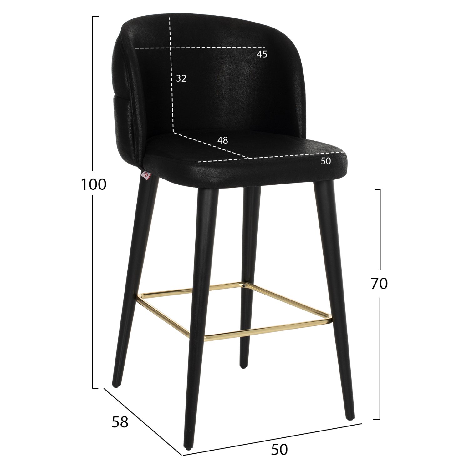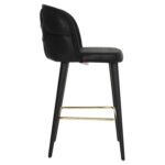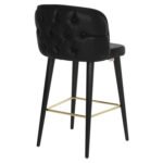 Επαγγελματικό σκαμπό bar «MARCELLO” σε μαύρο χρώμα με μαύρα ξύλινα πόδια. Τα πόδια ενώνονται μεταξύ τους περίπου στη μέση τους με μια μεταλλική ορθογώνια ράγα σε χρυσή απόχρωση. Το «MARCELLO” είναι λιτό, ποιοτικό και κομψό στην όψη, και σίγουρα τραβάει τα βλέμματα με το ύφασμα τύπου nubuck με το οποίο είναι επενδυμένο. Είναι ψηλό με πλάτη, η οποία στο πίσω μέρος της έχει καπιτονέ τεχνοτροπία, πράγμα που επιτείνει τον ιδιαίτερο χαρακτήρα αυτού του σκαμπό.