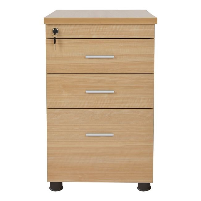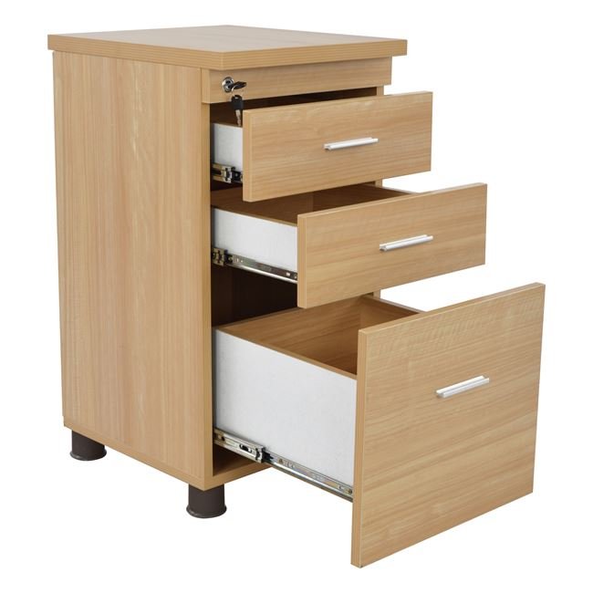 Συρταριέρα γραφείου για επαγγελματική χρήση, κατασκευασμένη από ανθεκτική μελαμίνη σε απόχρωση οξιάς με κλειδαριά για τα 2 πρώτα συρτάρια,