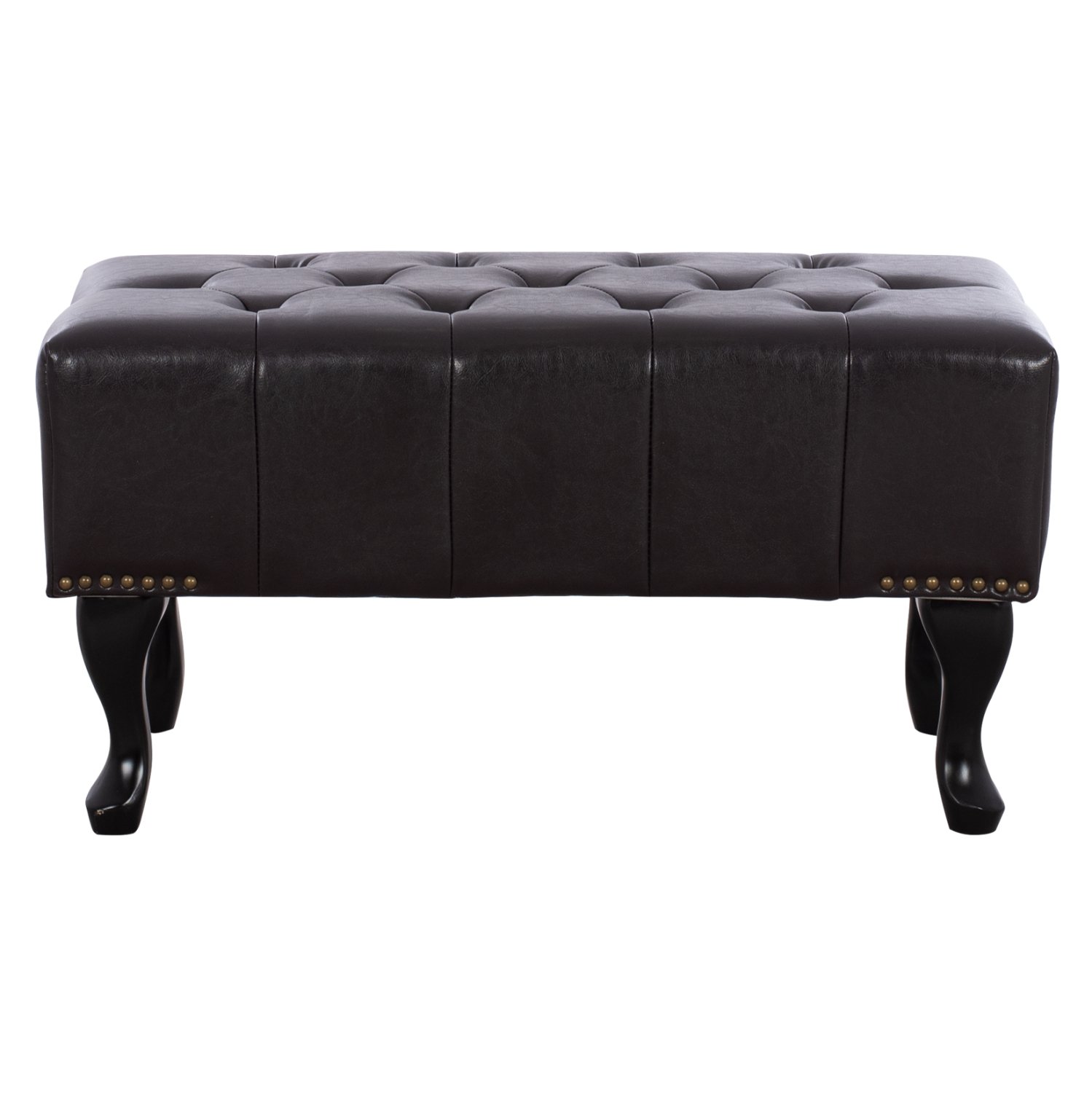 Ταμπουρέ-υποπόδιο τύπου Chesterfield EMMA από PU δέρμα, σε σκούρα καφέ απόχρωση.