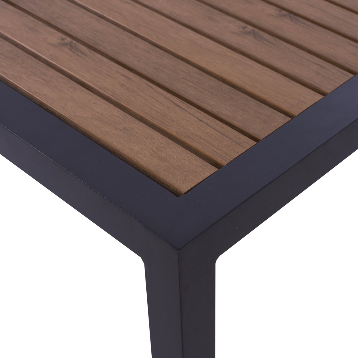 Επαγγελματικό τραπεζάκι αλουμινίου με 4 πόδια, σε σκούρη γκρι απόχρωση με POLYWOOD επιφάνεια.