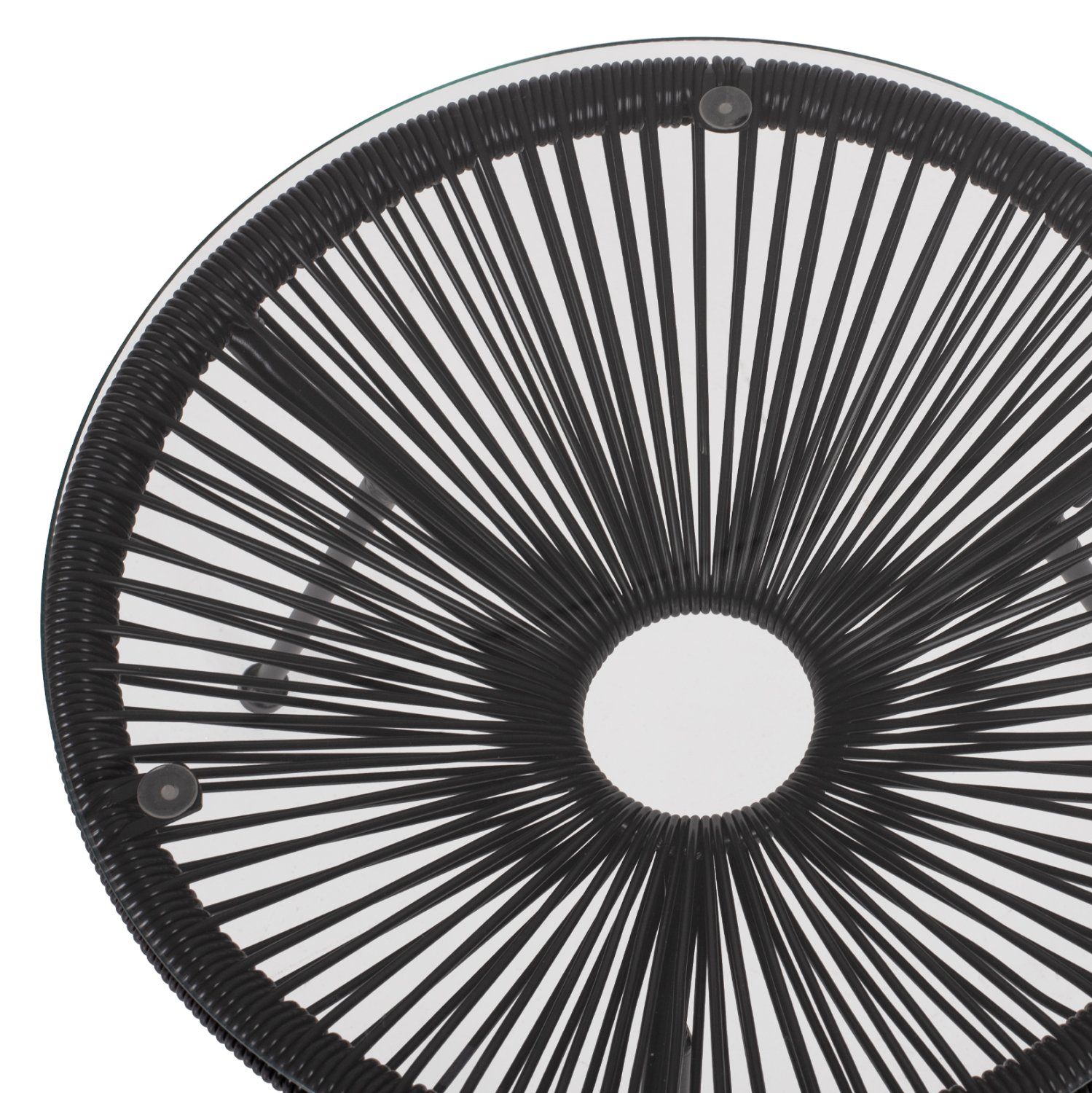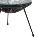 Το ALLEGRA είναι ένα χαμηλό στρογγυλό βοηθητικό τραπέζι, κυρίως για επαγγελματική χρήση. Στηρίζεται σε μια βάση με 3 μαύρα μεταλλικά πόδια. Το τραπέζι είναι κωνικό από συνθετικό Rattan επίσης σε μαύρο χρώμα, και η επιφάνειά του είναι γυαλί ασφαλείας. Ένα πανέμορφο τραπέζι, το οποίο αν συνδυαστεί και με καρέκλες της ίδιας σειράς θα αποτελέσει ένα καταπληκτικό μέρος στον χώρο σας.