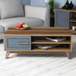 ΗΜ9497.02 τραπεζάκι σαλονιού—– Το τραπεζάκι αυτό είναι ένα πανέμορφο έπιπλο σε χρώμα καρυδί. Το πρακτικό του design θα αλλάξει την εικόνα του σαλονιού ή του καθιστικού σας προς το καλύτερο. Πρόκειται για μια κατασκευή με μια ικανοποιητικού μεγέθους επάνω επιφάνεια. Από κάτω υπάρχουν δύο ράφια και ένας ακόμα αποθηκευτικός χώρος με πορτάκι σε ΜΠΛΕ χρώμα. Η κομψότητα, η ποιότητα και το minimal πρακτικό design, είναι κάποια χαρακτηριστικά από το τραπέζι σαλονιού, που έχει φτιαχτεί για εσένα.
