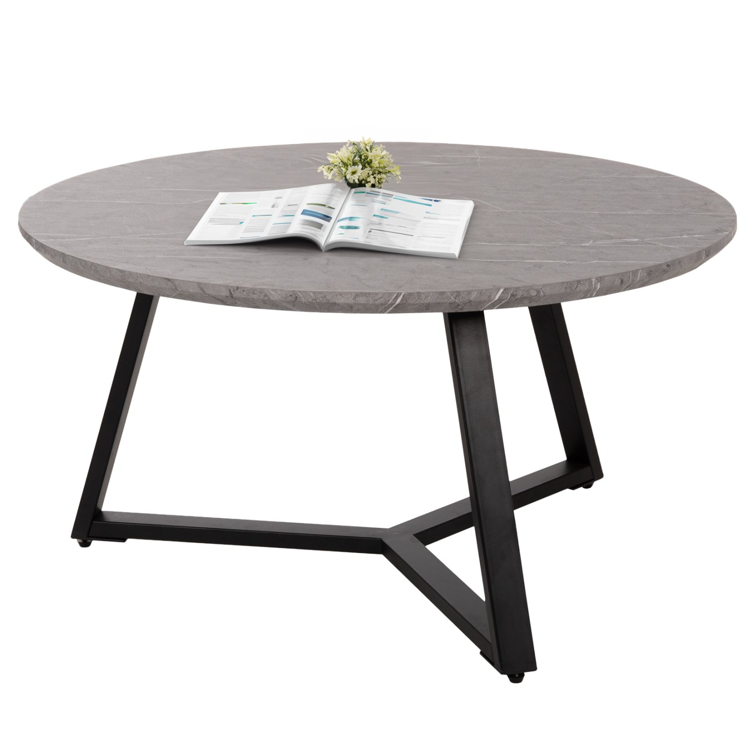 ΤΡΑΠΕΖΙ ΣΑΛΟΝΙΟΥ ΣΤΡΟΓΓΥΛΟ HM9586.02 MDF ΓΚΡΙ ΜΑΡΜΑΡΟ-ΜΑΥΡΗ ΣΑΓΡΕ ΒΑΣΗ Φ80×42Υεκ.
