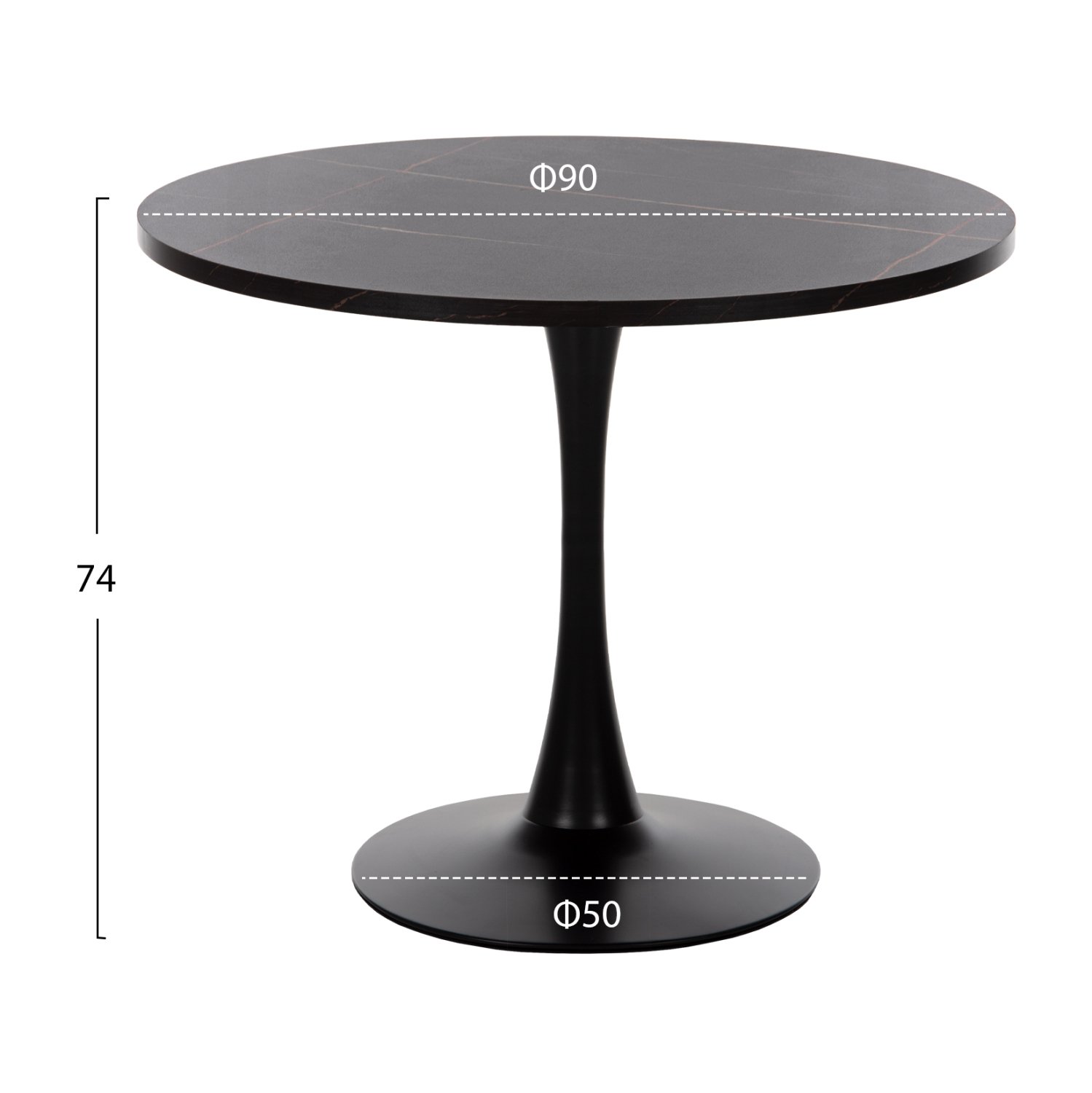 ΗΜ9421.02–Σας παρουσιάζουμε ένα μοντέρνο στρογγυλό τραπέζι για τραπεζαρία (ροτόντα δηλαδή), με επιφάνεια μελαμίνης σε ΜΑΥΡΟ ΜΑΡΜΑΡΟ χρώμα. Η επιφάνεια στηρίζεται σε μια μεταλλική MAYΡΗ κολώνα κυλινδρική η οποία έχει τις κατάλληλες διαστάσεις για να υποστηρίξει επαρκώς το τραπέζι. Τα τραπέζια ροτόντες είναι ιδιαιτέρως πρακτικά και όμορφα γιατί δεν έχουν κορυφές και «αρχηγούς», ούτε και γωνίες ή πόδια που, πολλές φορές, δημιουργούν άβολες καταστάσεις. Τέλος, η συγκεκριμένη ροτόντα είναι σε ικανοποιητική διάσταση πράγμα που την καθιστά σημείο αναφοράς για την τραπεζαρία σας.