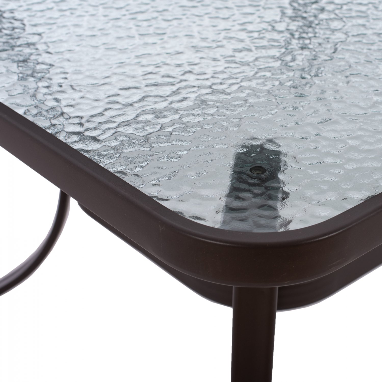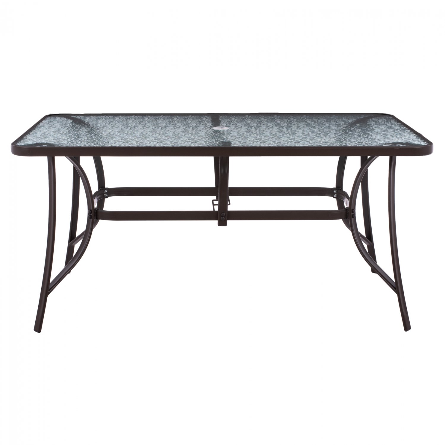 Τραπέζι μεταλλικό εξωτερικού χώρου σε καφέ απόχρωση με ενσωματωμένο τζάμι ασφαλείας (secure).