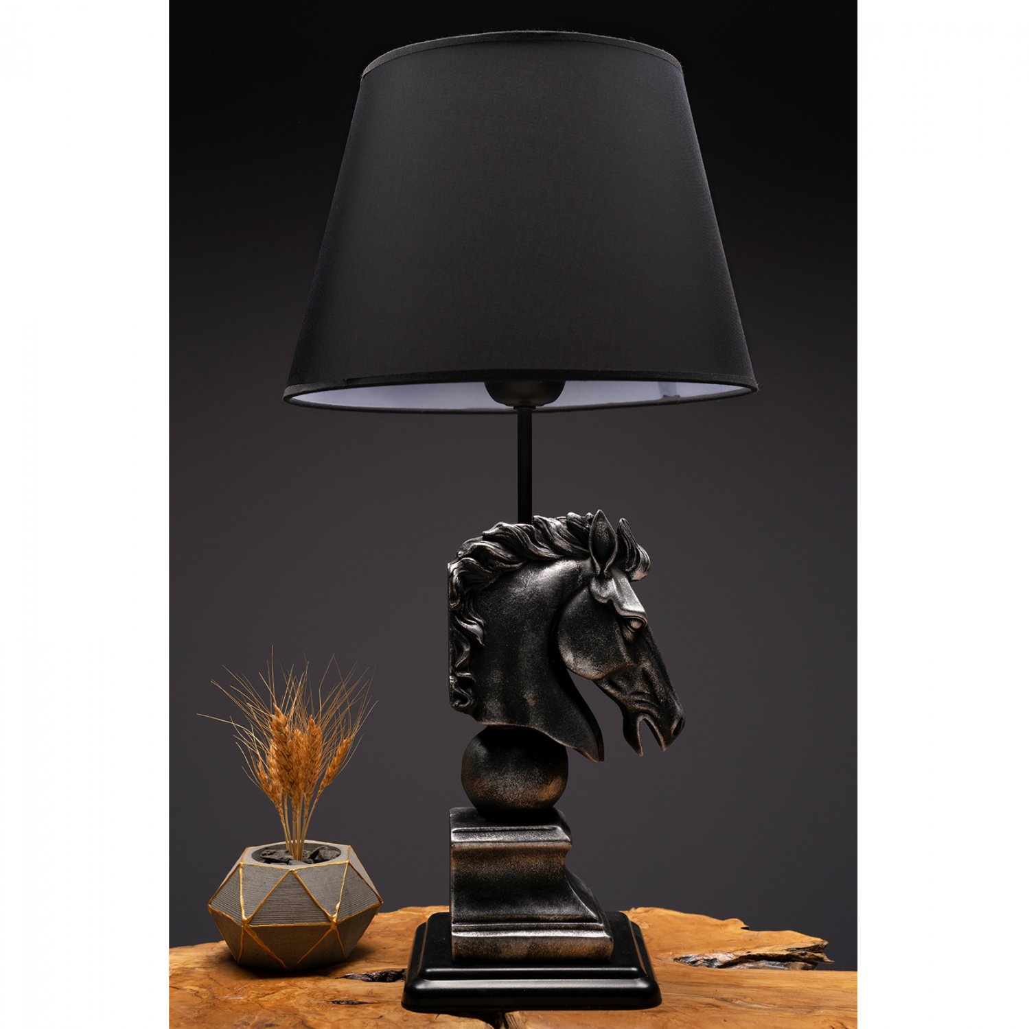 Επιτραπέζιο φωτιστικό, σε απόχρωση μαύρο με ασημί.