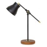 Μια ανανεωμένη εμφάνιση σε ένα διαχρονικό και παραδοσιακό κομμάτι που στυλιστικά δεν θα γεράσει ποτέ. Αυτό το ρυθμιζόμενο κομψό φωτιστικό γραφείου διαθέτει βάση από ξύλο MDF σε ανοιχτή καφέ απόχρωση, μεταλλική κολώνα σε μαύρο χρώμα και μεταλλικό βραχίονα επίσης σε μαύρο χρώμα. Το «καπελάκι» είναι επίσης μεταλλικό και μαύρο ενώ η όλη σύνθεση συμπληρώνεται με χρυσές άκρες τόσο στην κολώνα, όσο και στον βραχίονα. Το τελικό αποτέλεσμα αν και κλασικό, σου αφήνει μια μοντέρνα αίσθηση.