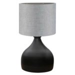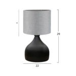Επιτραπέζιο φωτιστικό σε μαύρο χρώμα με «τύμπανο» σε γκρι χρώμα. Ένα όμορφο φωτιστικό που θα δημιουργήσει την ατμόσφαιρα που πάντα φανταζόσασταν για τον χώρο σας. Το υφασμάτινο «τύμπανο» προσφέρει στον χώρο σας στιγμιαία στυλιστική αναβάθμιση. Ειδικά, το γκρι χρώμα του «τύμπανου» πραγματικά δίνει την εντύπωση της πολυτέλειας χωρίς όριο. Το σώμα του φωτιστικού είναι σε καλαίσθητο σχήμα μισής μπουκάλας και ο συνδυασμός με το «τύμπανο» δημιουργεί μια οικεία εικόνα που θα σας χαλαρώσει μετά από μια έντονη μέρα. Αυτού του είδους τα φωτιστικά δεν προορίζονται για φωτιστικά διαβάσματος και αυτό πρέπει πάντα να λαμβάνεται υπόψη κατά την επιλογή τους. Είναι καθαρά διακοσμητικά και το ταίριασμά τους με τον περιβάλλοντα χώρο θα πρέπει να είναι αρμονικό. Αυτό το φωτιστικό είναι λιτό, κομψό και βολικό σε διαστάσεις παρέχοντας αμέτρητες δυνατότητες «δεσίματος» με την υπόλοιπη διακόσμησή σας. Είναι ένα μικρό έργο τέχνης.