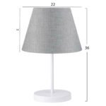 Μοντέρνο επιτραπέζιο φωτιστικό με κυκλική βάση και κολώνα σε λευκό χρώμα, και ανοιχτό γκρι υφασμάτινο τραπεζοειδές καπέλο. Πρόκειται για διακοσμητικό φωτιστικό, σε απλή και λιτή γραμμή. Το φως διαχέεται στον χώρο ευχάριστα και γλυκά ξεκουράζοντας την όραση. Αυτού του είδους τα φωτιστικά δεν προορίζονται για φωτιστικά διαβάσματος και αυτό πρέπει πάντα να λαμβάνεται υπόψη κατά την επιλογή τους. Είναι καθαρά διακοσμητικά και το ταίριασμά τους με τον περιβάλλοντα χώρο θα πρέπει να είναι αρμονικό. Αυτό το φωτιστικό είναι κομψό και βολικό σε διαστάσεις παρέχοντας αμέτρητες δυνατότητες «δεσίματος» με την υπόλοιπη διακόσμησή σας. Είναι ένα μικρό έργο τέχνης.