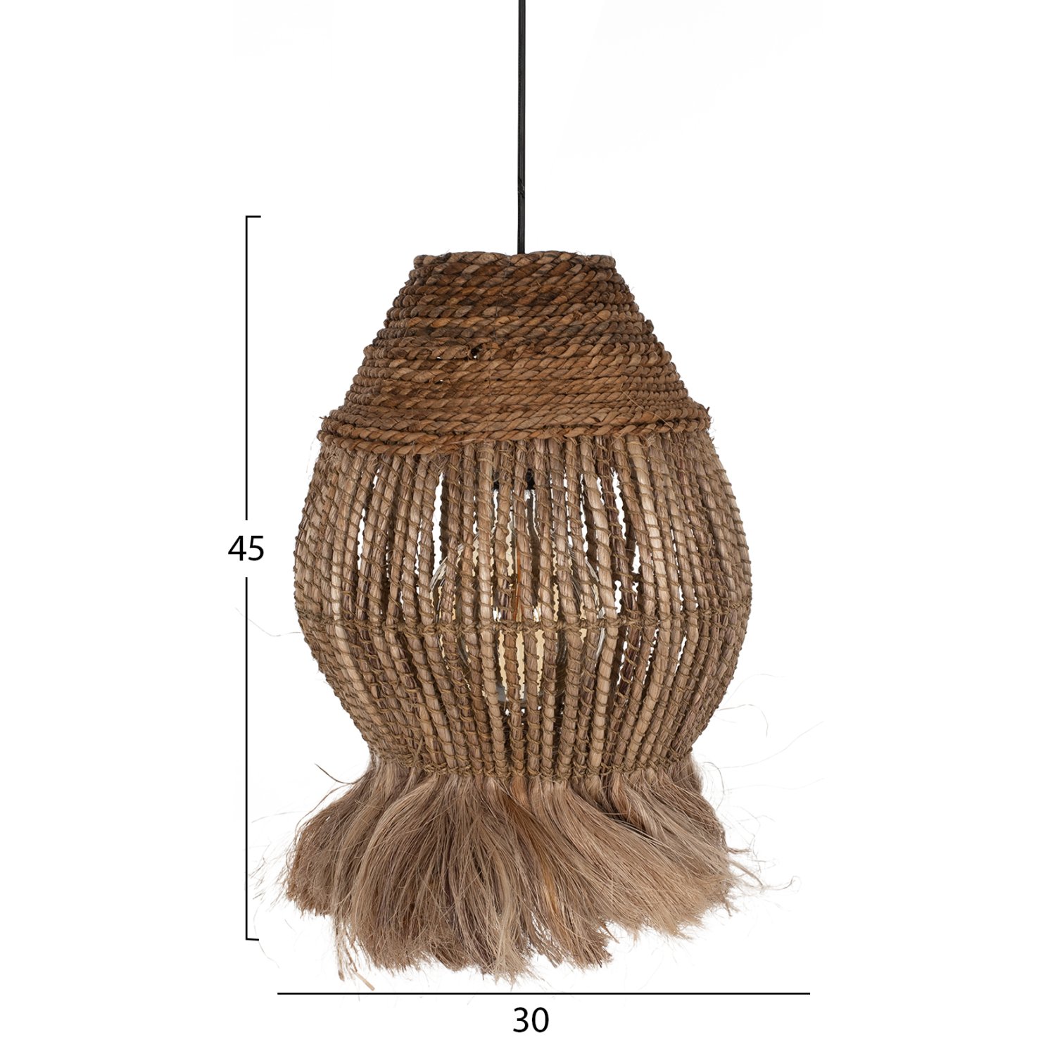 Hm7772- Kρεμαστό φωτιστικό—- Αν επιθυμείτε να διακοσμήσετε το χώρο σας με ένα φωτιστικό σε boho στυλ, αυτό είναι μια χαρακτηριστική επιλογή. Είναι ένα μονόφωτο φωτιστικό με «καπέλο» σε κυλινδρικό σχήμα σαν «φαναράκι» φτιαγμένο από ίνες κάνναβης Μανίλας σε φυσικό χρώμα. Στο κάτω μέρος η κατασκευή καταλήγει σε κρόσια από τις ίδιες ίνες, δίνοντας μια άλλη αισθητική στο φωτιστικό.
