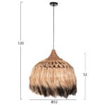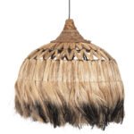 Hm7761- Kρεμαστό φωτιστικό—- Αν επιθυμείτε να διακοσμήσετε το χώρο σας με ένα φωτιστικό σε boho στυλ, αυτό είναι μια χαρακτηριστική επιλογή. Είναι ένα μονόφωτο φωτιστικό με «καπέλο» σε σχήμα καμπάνας φτιαγμένο από ίνες κάνναβης Μανίλας σε φυσικό και μαύρο χρώμα. Το ιδιαίτερο χαρακτηριστικό αυτού του φωτιστικού είναι ότι στο επάνω μέρος του καπέλου οι ίνες είναι πλεγμένες με χιαστί τρόπο δίνοντας μια άλλη αισθητική στο φωτιστικό.