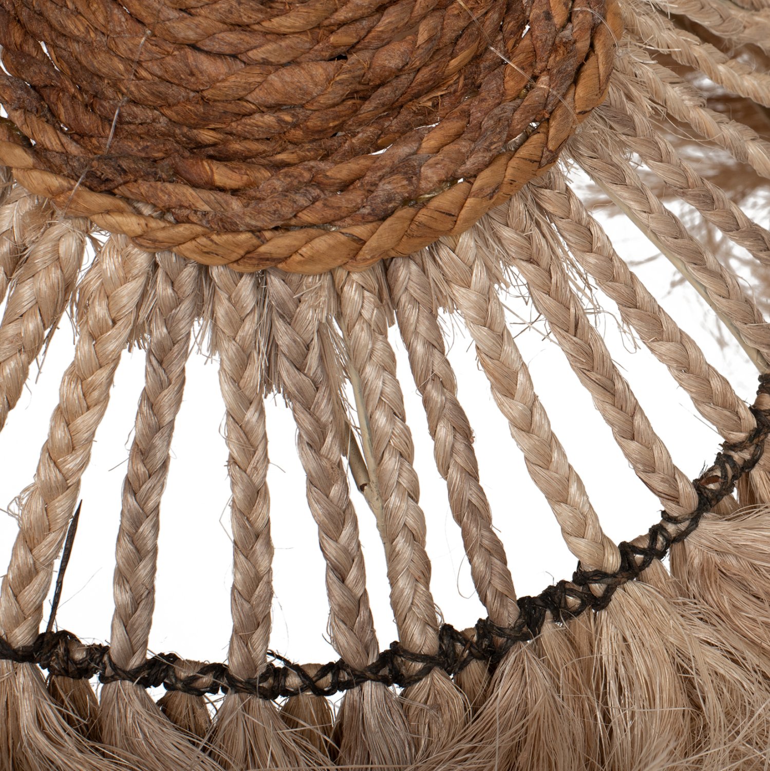 Hm7806- Kρεμαστό φωτιστικό—- Αυτό το φωτιστικό θα κάνει τον χώρο σας να ξεχωριζει. Είναι ένα μονόφωτο φωτιστικό με «καπέλο» σε σχήμα καμπάνας από ίνες και σχοινί κάνναβης Μανίλας σε φυσικό χρώμα. Το σχοινί βρίσκεται στο επάνω μέρος του καπέλου και το δένει με το κάλυμμα του ντουί.