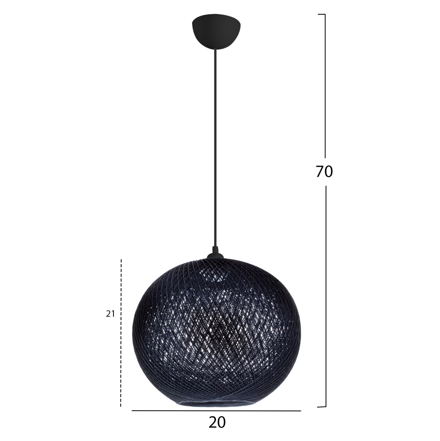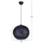 Αν επιθυμείτε να διακοσμήσετε το χώρο σας με ένα φωτιστικό σε boho στυλ, αυτό είναι η πιο σωστή επιλογή. Είναι ένα μονόφωτο φωτιστικό σε σχήμα σφαιρικό και είναι επενδυμένο με λεπτό πλεκτό σκοινί, υψηλής ποιότητας και αντοχής στο χρόνο, σε μαύρο χρώμα. Tο ύψος του φωτιστικού προσαρμόζεται ανάλογα με τον τρόπο τοποθέτησης, έτσι ώστε να το διαμορφώσετε στο ύψος που σας ικανοποιεί.
