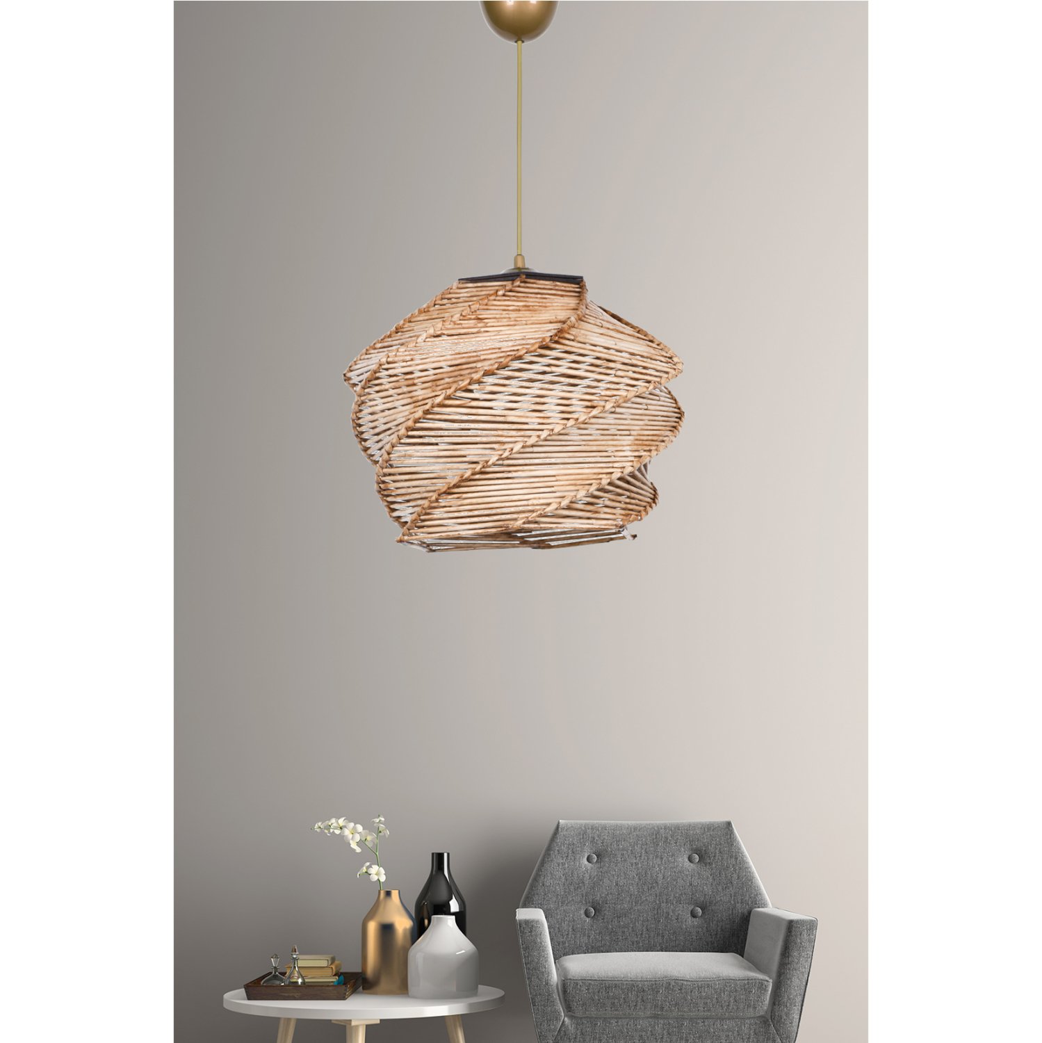 Μοντέρνο κρεμαστό φωτιστικό οροφής,από bamboo υλικό σε φυσική απόχρωση.